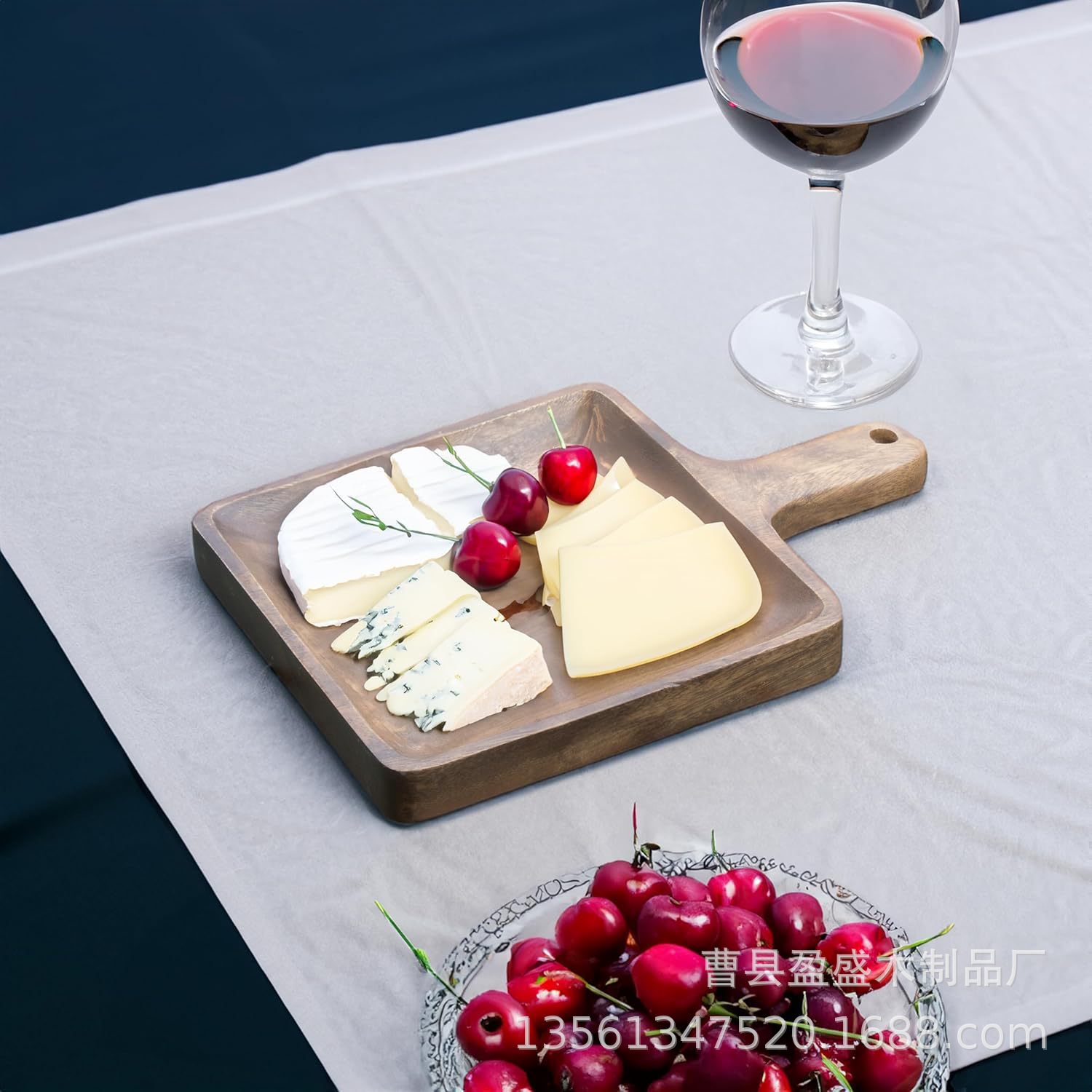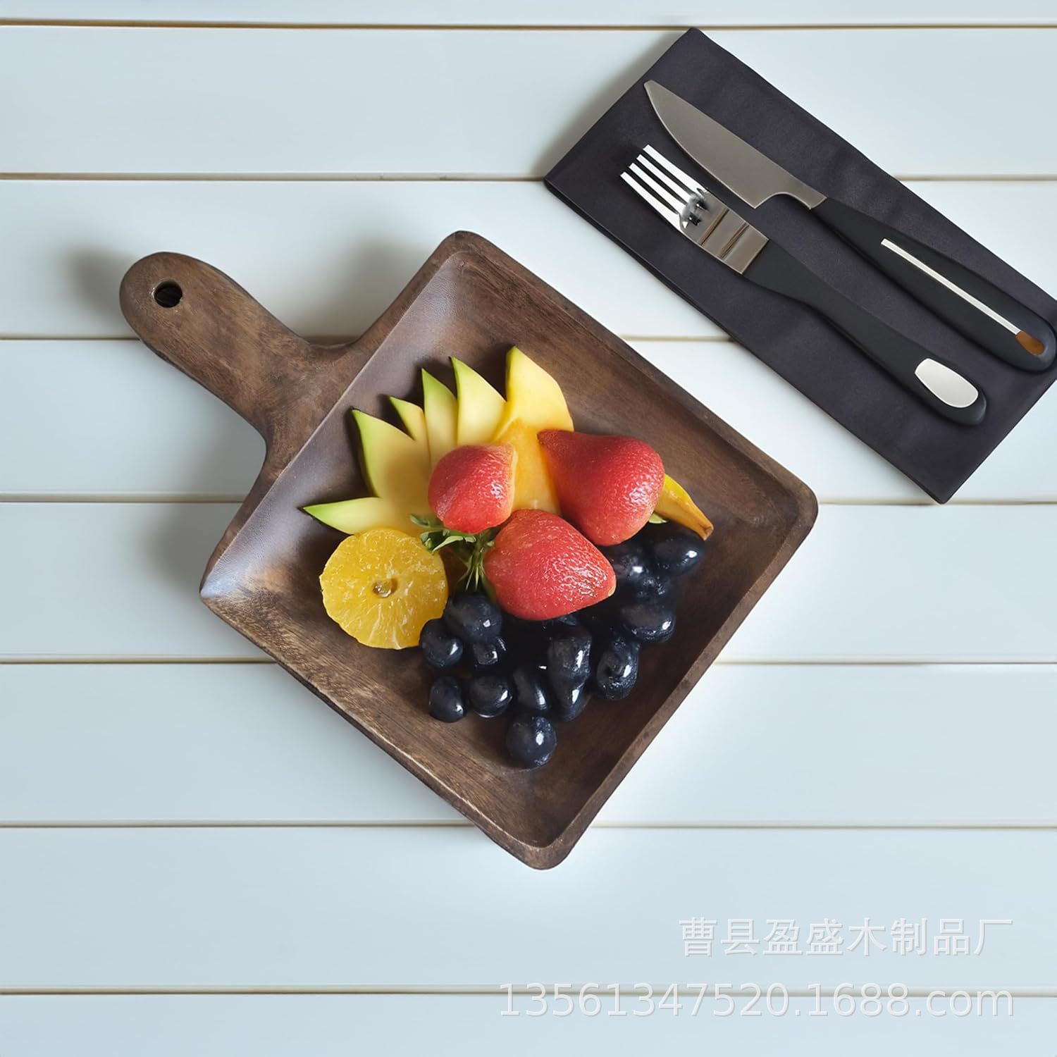 손잡이가 있는 원목 트레이 치즈 피자 나무 디너 트레이 양면 도마 가정용 과일 스낵 서빙 트레이