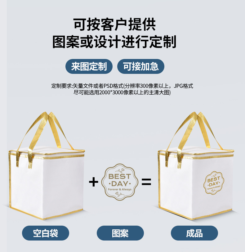 부직포 생일 케이크 절연 가방 맞춤형 두꺼운 알루미늄 호일 냉각 절연 가방 야외 봉제 지퍼 핸드백