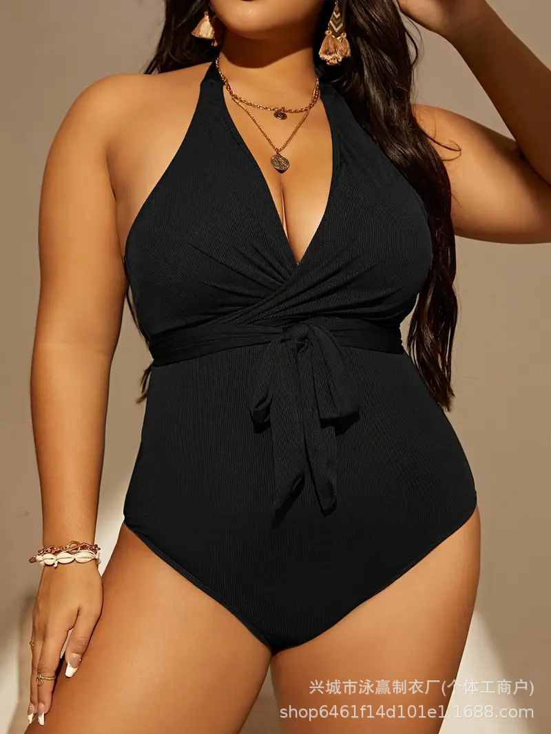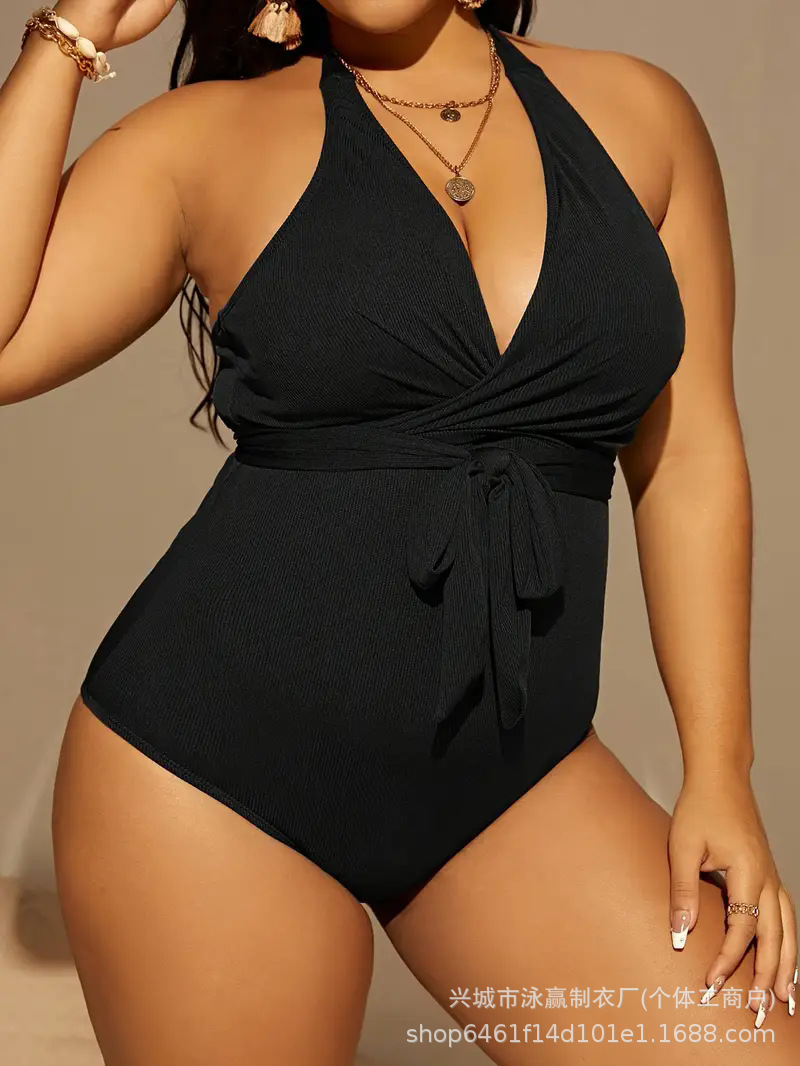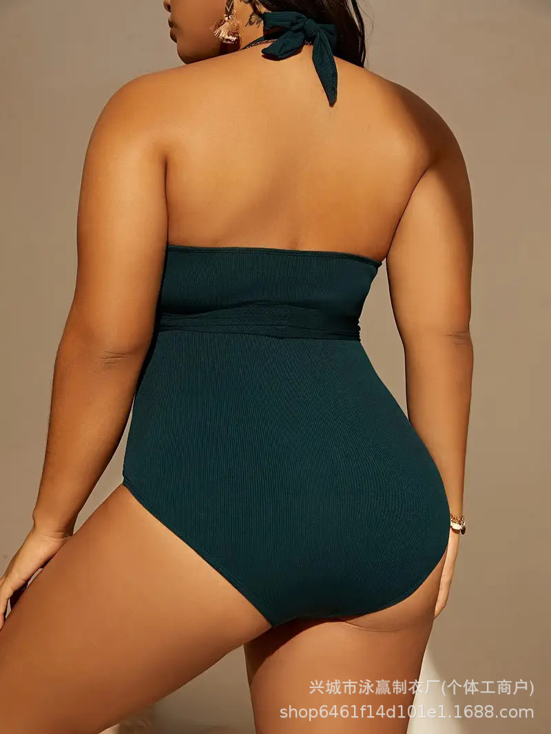 유럽과 미국의 플러스 사이즈 원피스 수영복, 심플한 디자인, 솔리드 컬러, 배를 덮는 루즈한 배를 지지하는 섹시한 수영복, 비치 수영복, 직접 공급