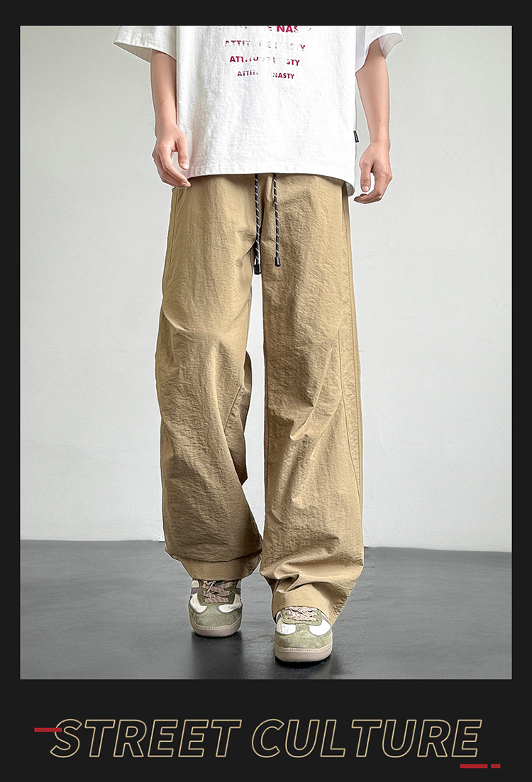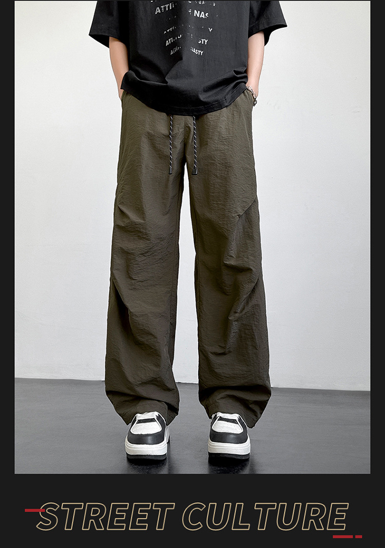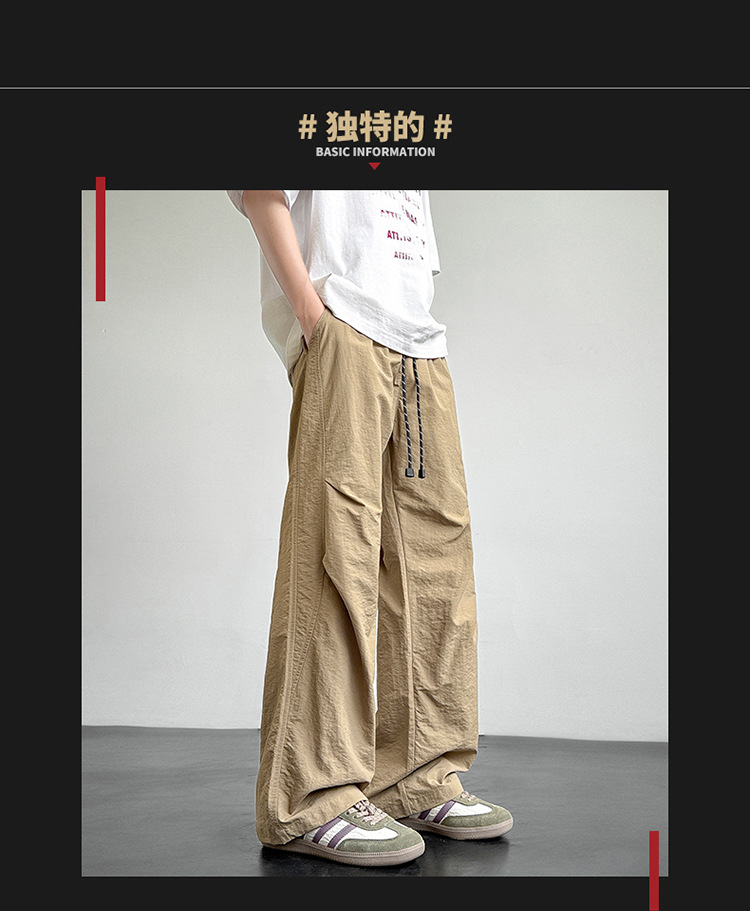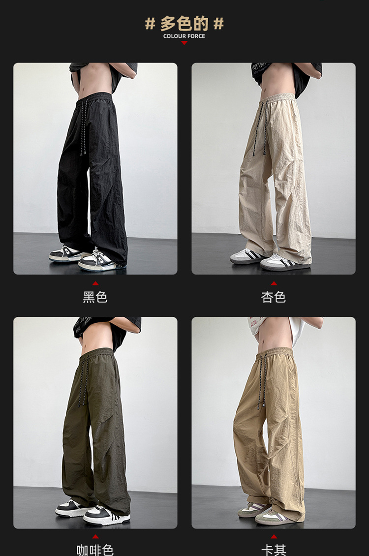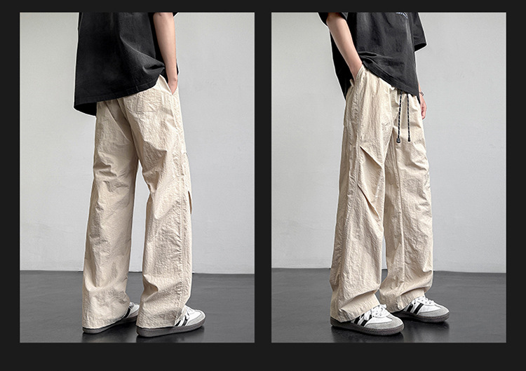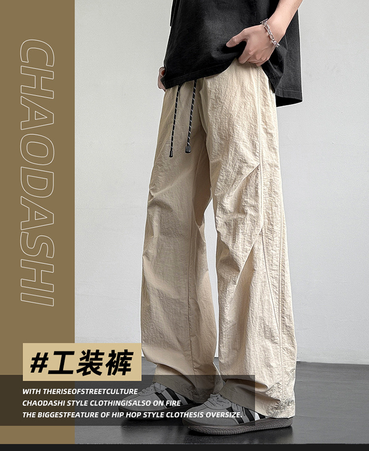 아메리칸 아이스 실크 워크웨어 남성용 여름 얇은 루즈 스트레이트 아웃도어 캐주얼 파라트리퍼스 팬츠 스포츠 와이드 팬츠