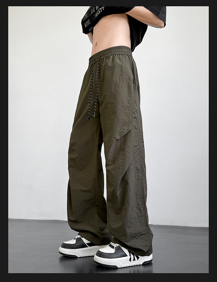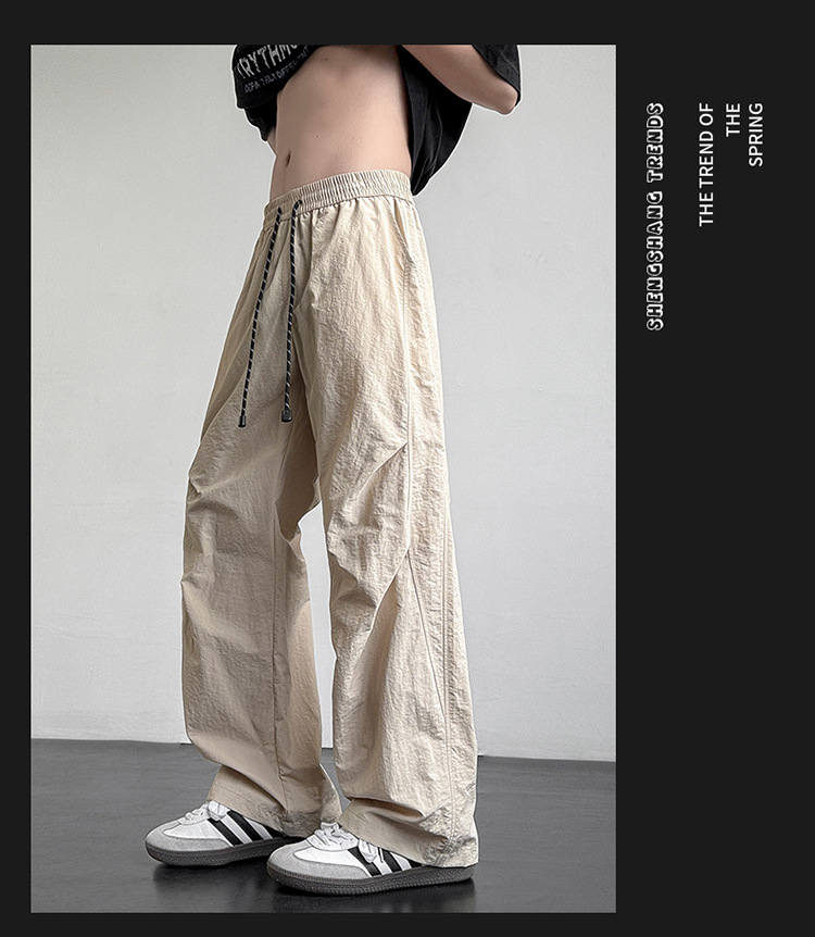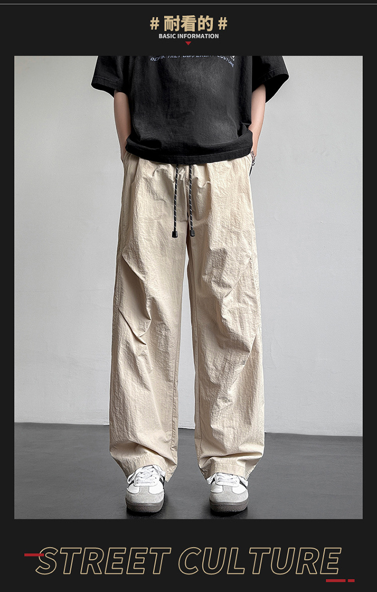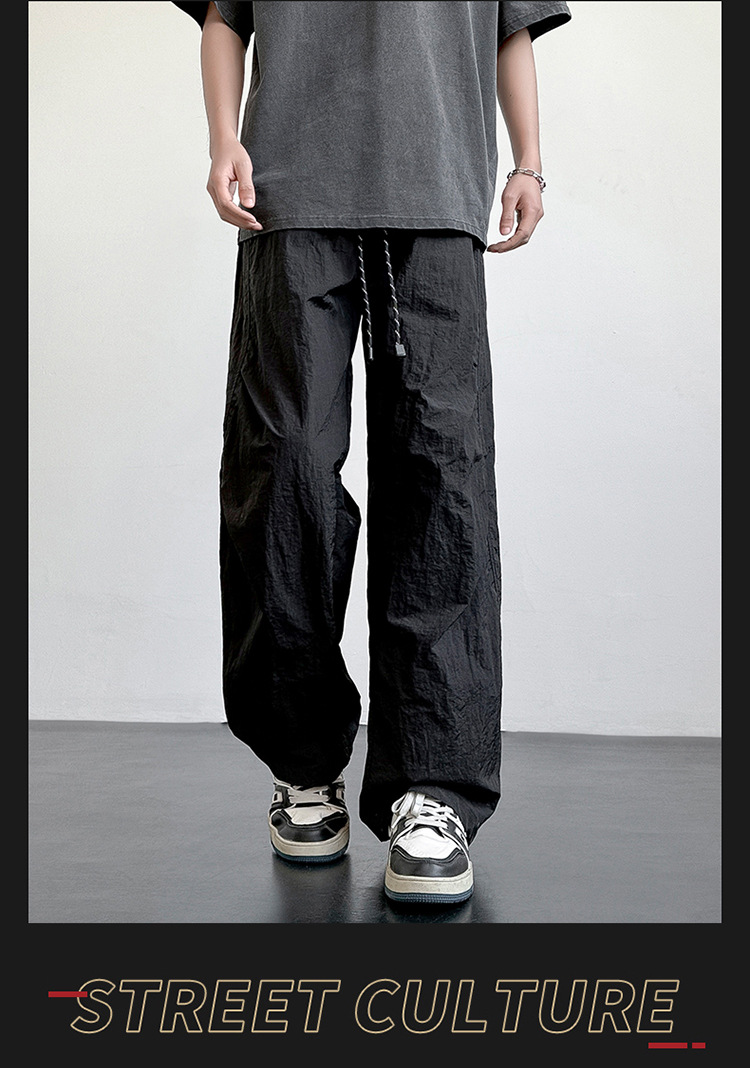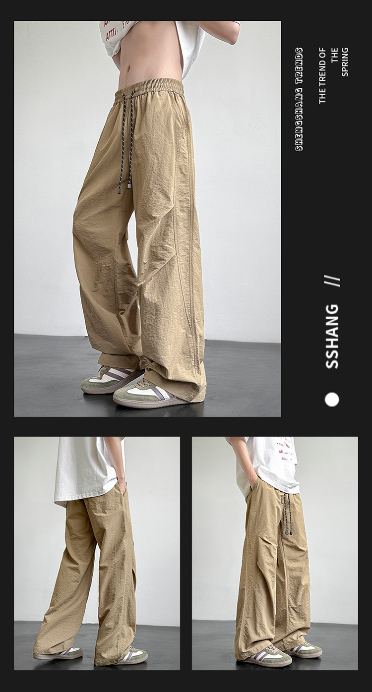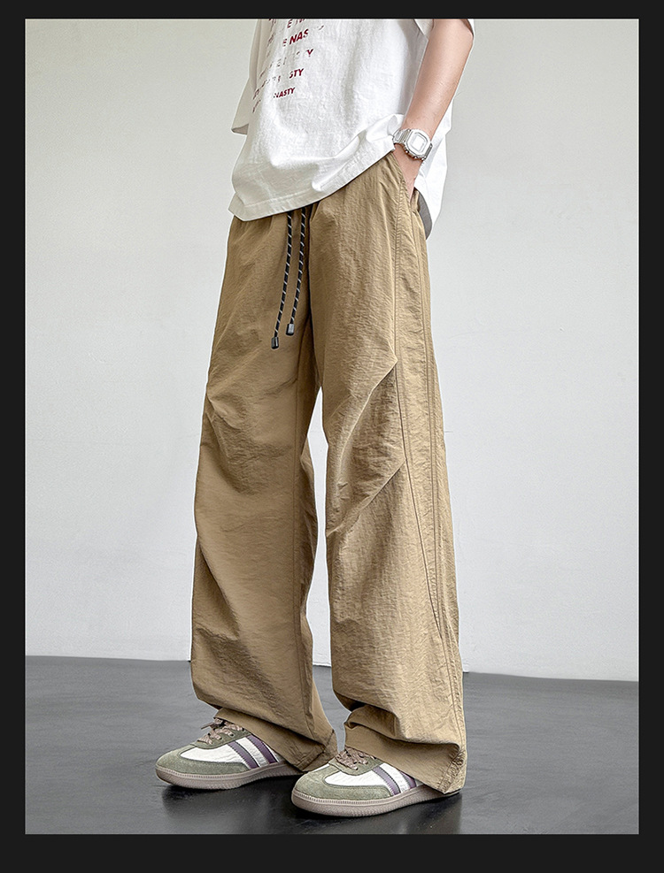 아메리칸 아이스 실크 워크웨어 남성용 여름 얇은 루즈 스트레이트 아웃도어 캐주얼 파라트리퍼스 팬츠 스포츠 와이드 팬츠