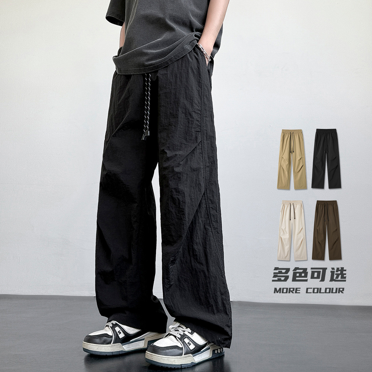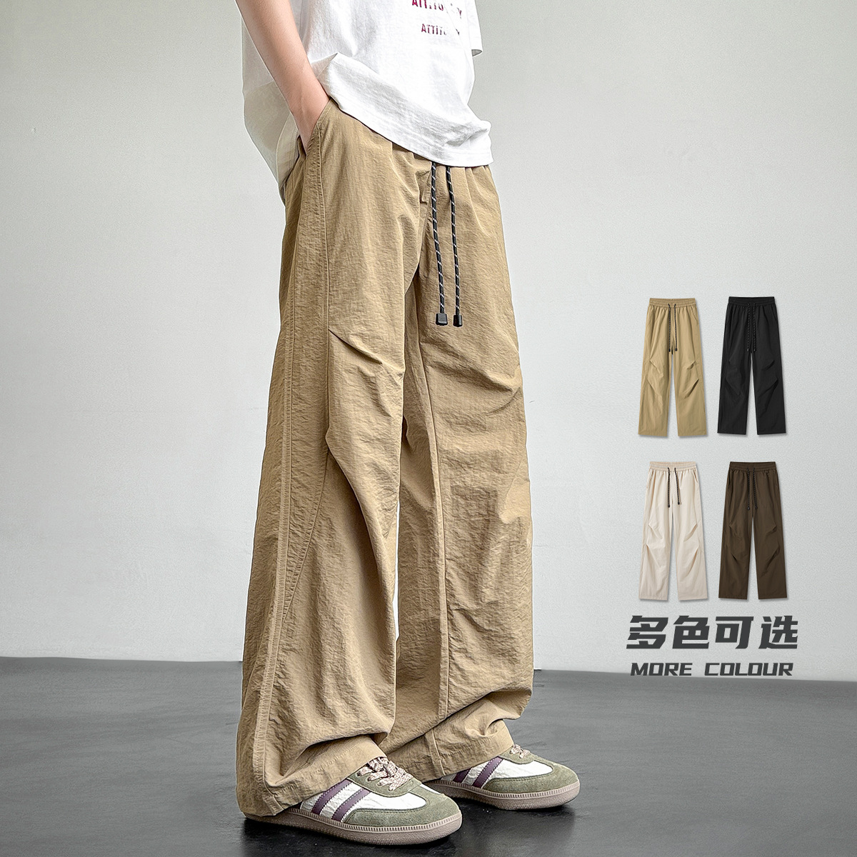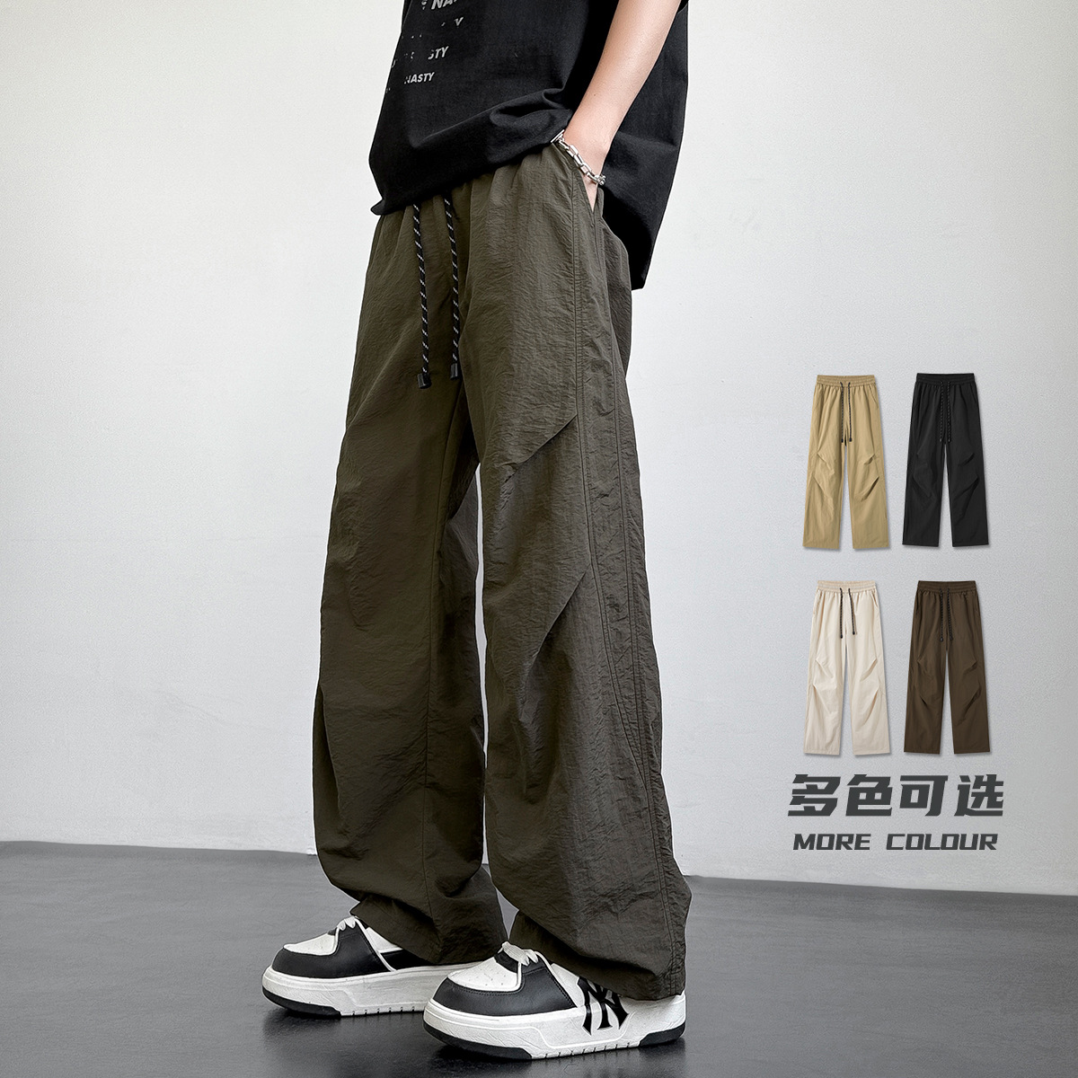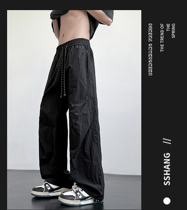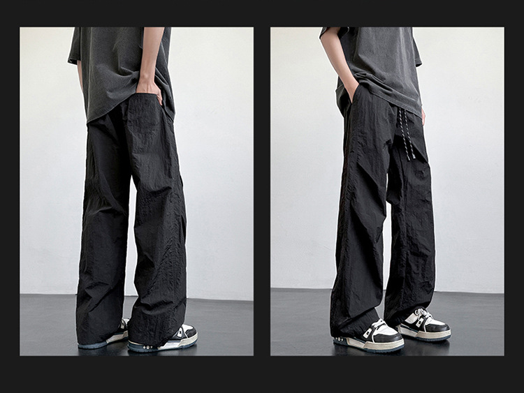 아메리칸 아이스 실크 워크웨어 남성용 여름 얇은 루즈 스트레이트 아웃도어 캐주얼 파라트리퍼스 팬츠 스포츠 와이드 팬츠