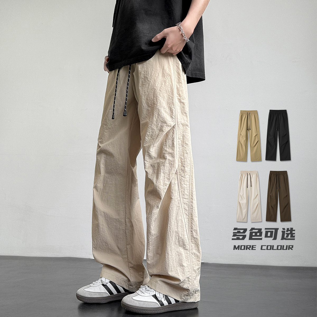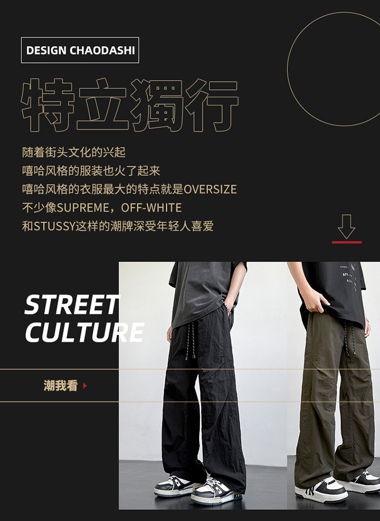 아메리칸 아이스 실크 워크웨어 남성용 여름 얇은 루즈 스트레이트 아웃도어 캐주얼 파라트리퍼스 팬츠 스포츠 와이드 팬츠스토어 가기