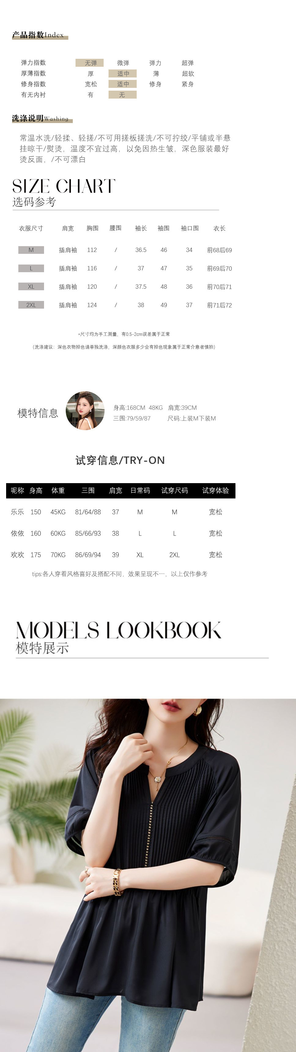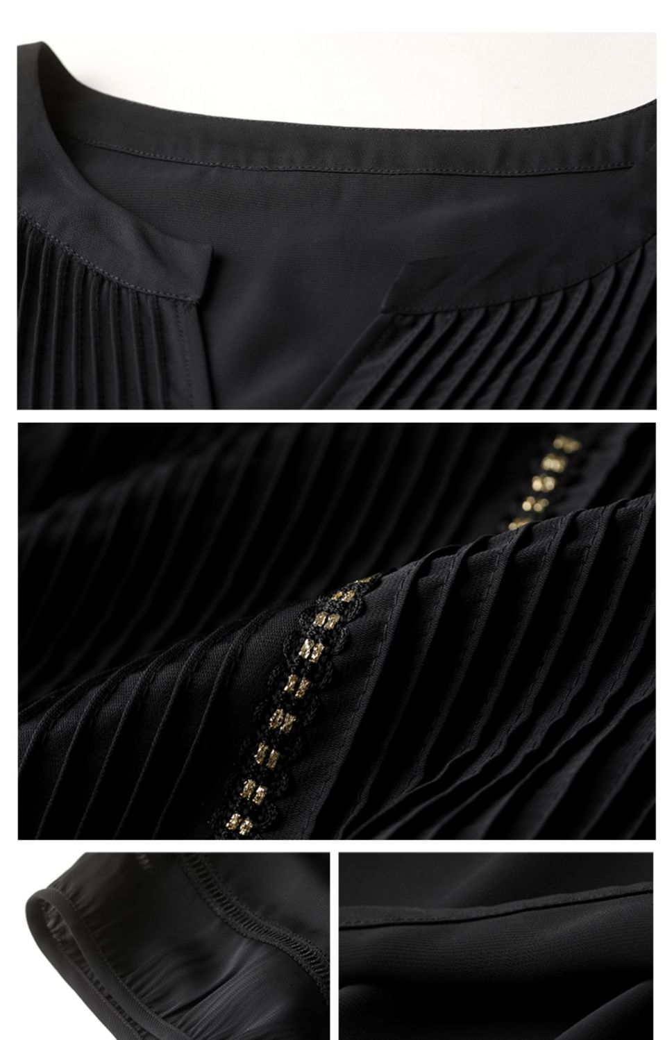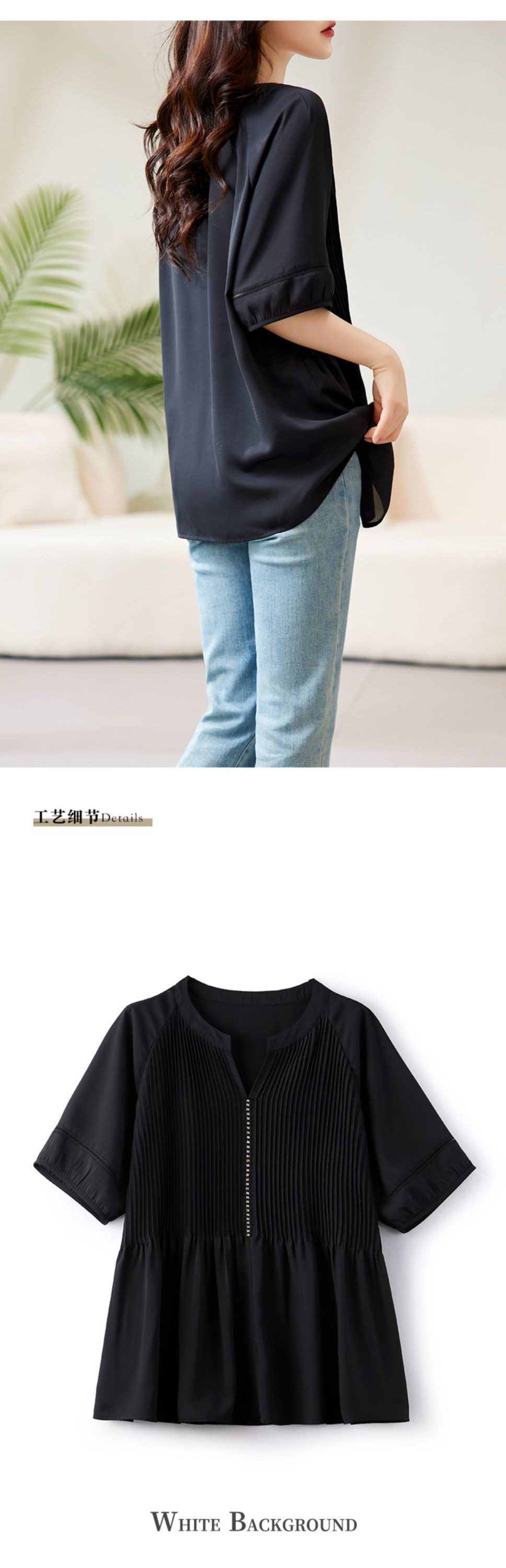 여성용 블랙 브이넥 쉬폰 셔츠, 여름 유럽 스타일, 루즈하고 세련된 셔츠, 빅사이즈, 뚱뚱한 mm, 배를 커버하고 슬리밍 탑스토어 가기