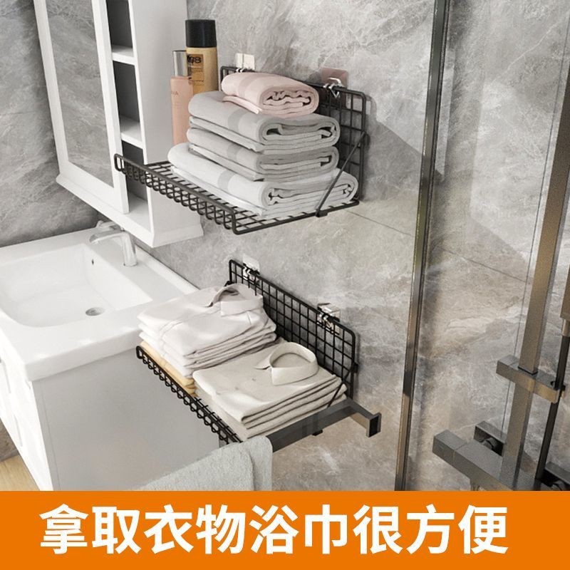 욕실 접이식 수납선반, 목욕타월걸이, 욕실 벽걸이 수건 및 옷 수납선반, 펀치 없는 옷 수납선반스토어 가기