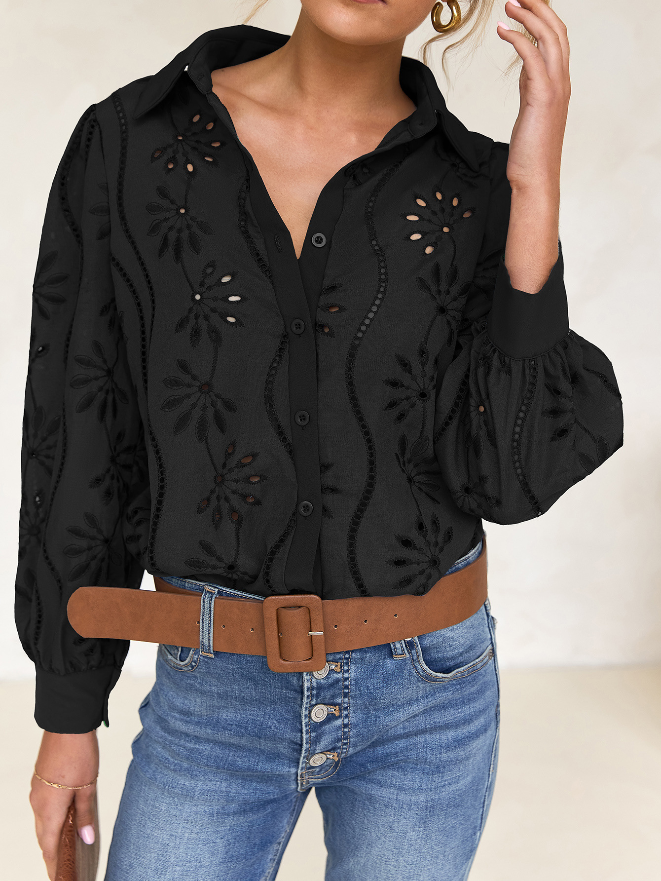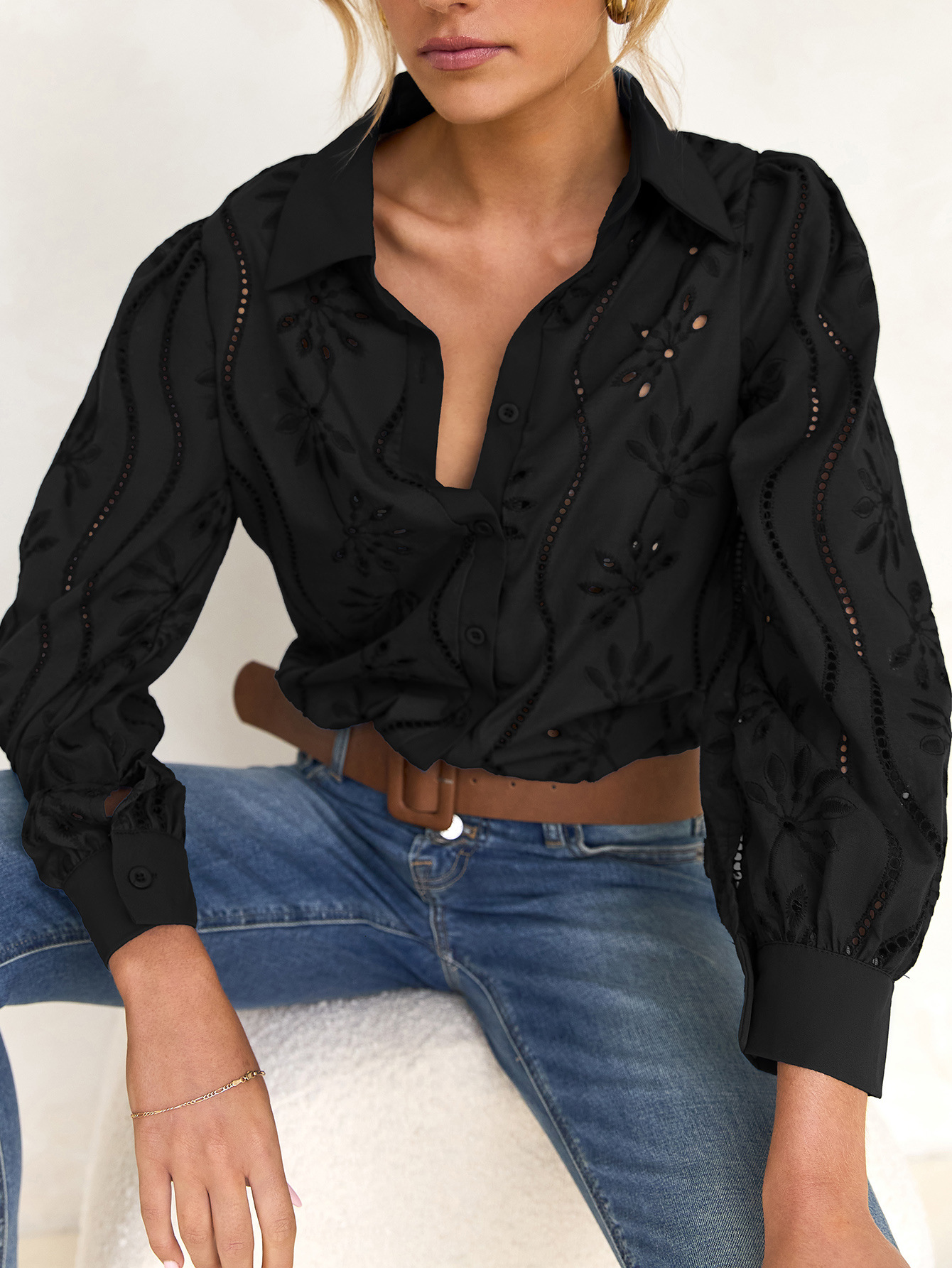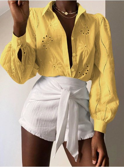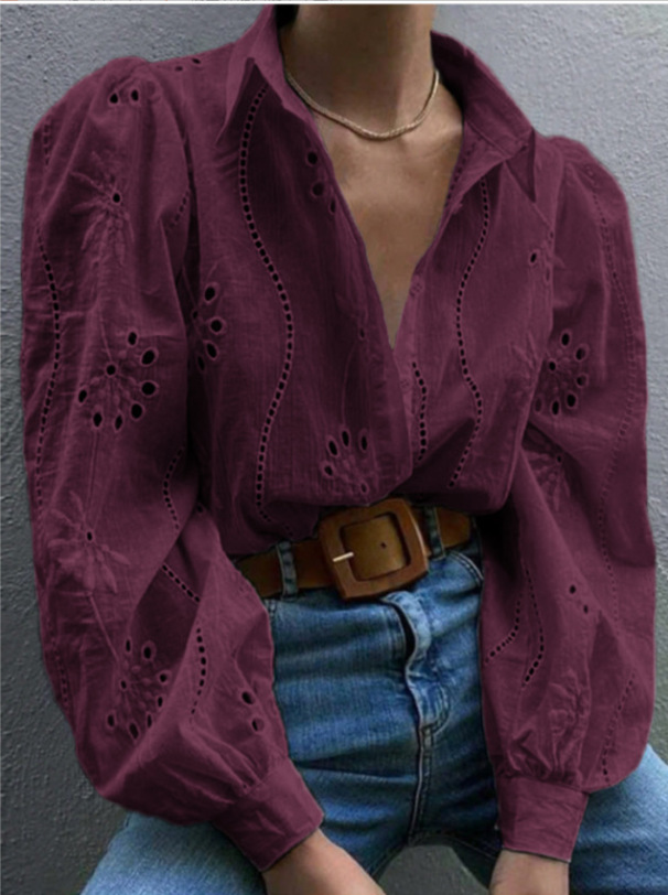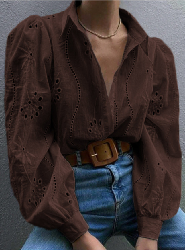 Amazon 2025 가을 겨울 대외 무역 유럽과 미국 캐주얼 루즈 패션 중공 퍼프 슬리브 카디건 탑 셔츠 여성 의류스토어 가기