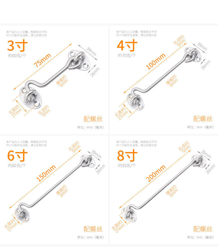 스테인레스 스틸 래치 도어 래치 도어 버클 도난 방지 도어 래치 잠금 장치 두꺼운 윈드 후크 창 후크 구식 창 후크 래치