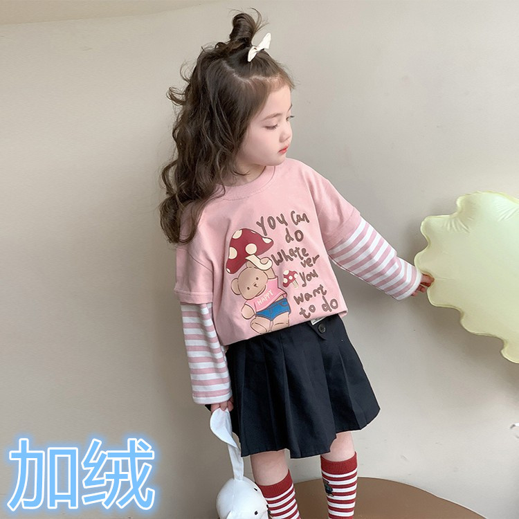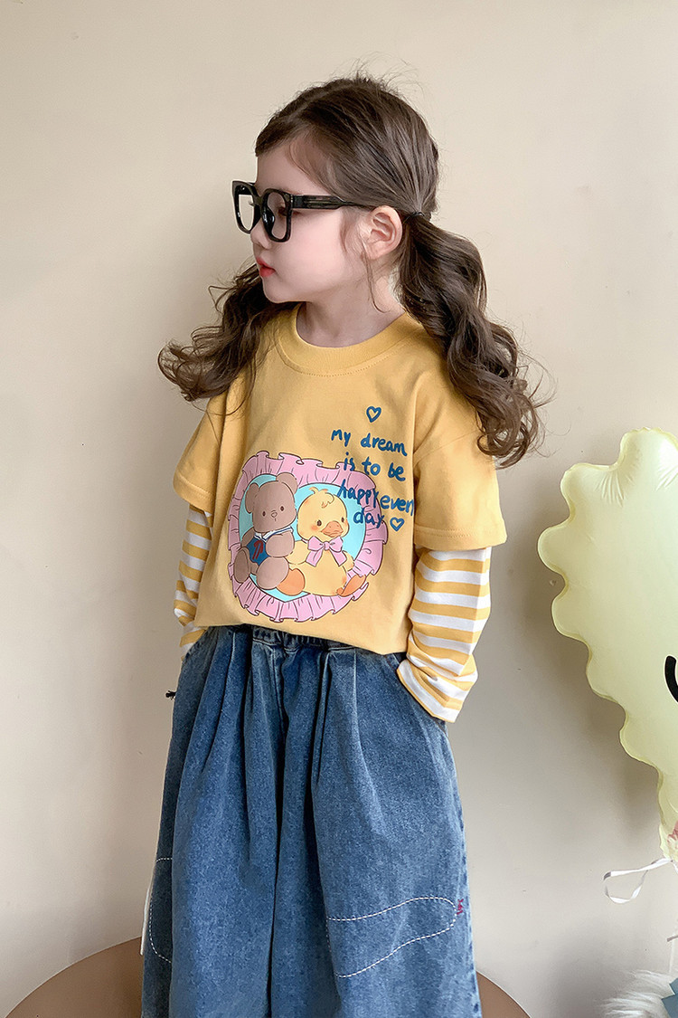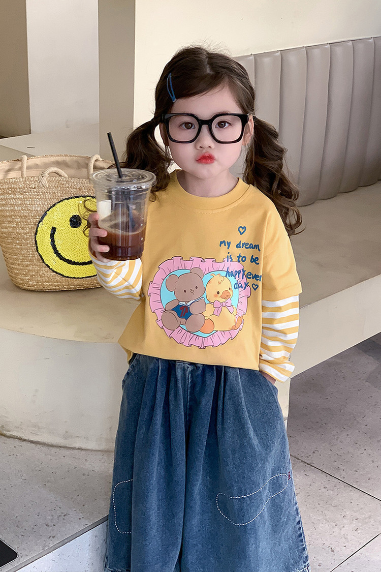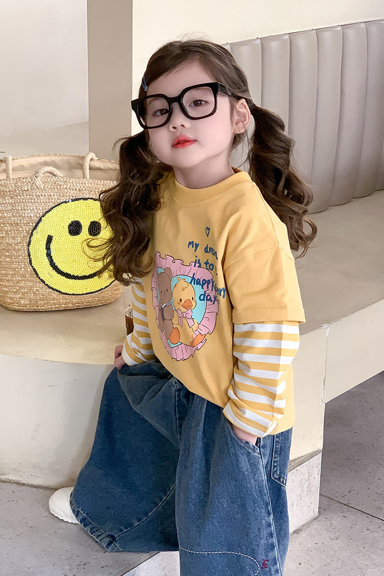 韩系儿童春装长袖打底衫春秋款韩版女童卡通T恤女孩宝宝纯棉上衣t