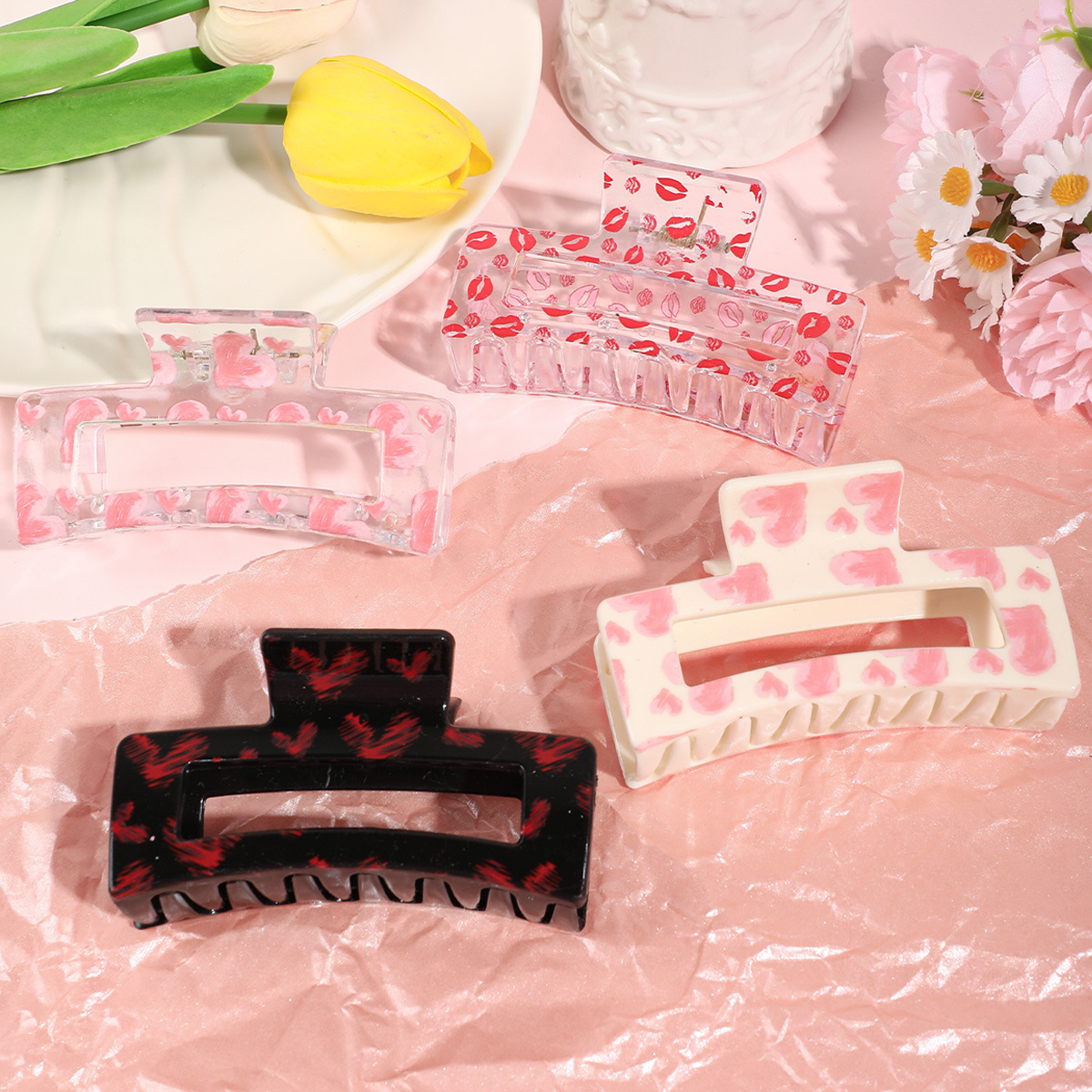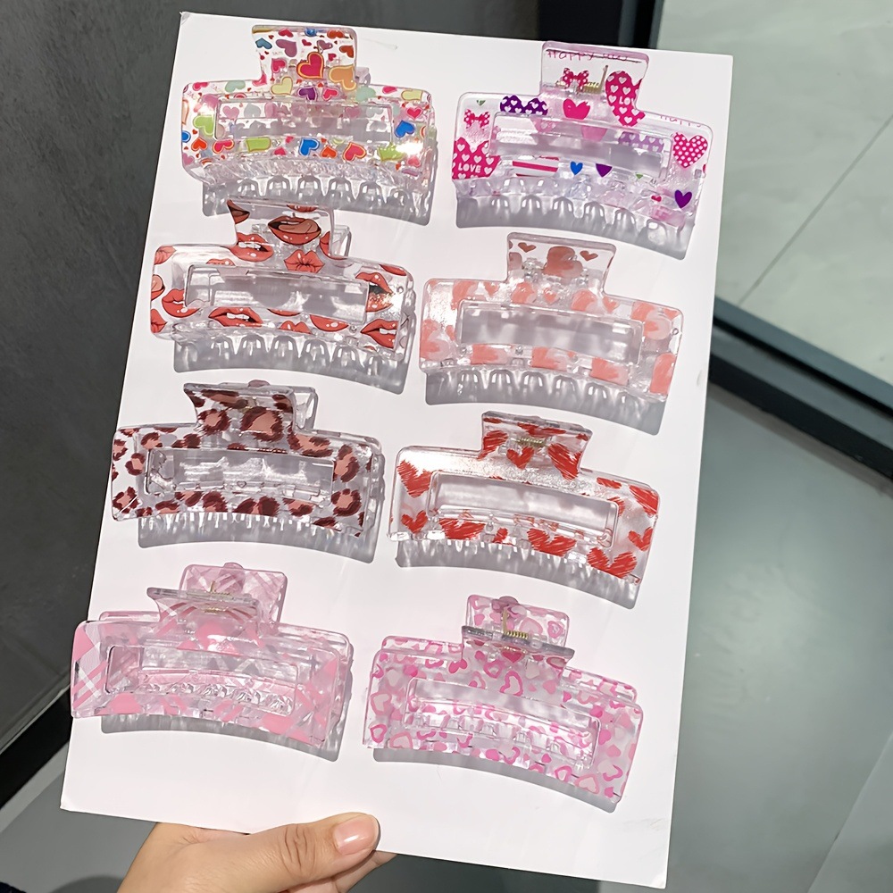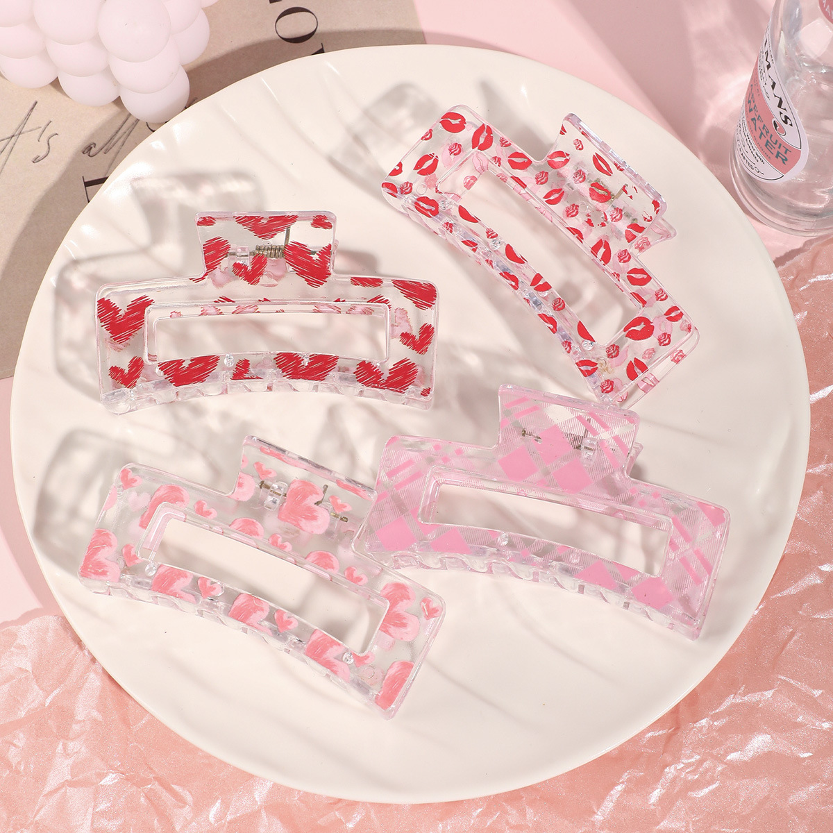 Fengpin Cross-Border 5pcs 러브 프린트 여름 열전달 달콤한 헤어 액세서리 Xiyin 핫 판매 큐브 머리핀 상어 클립스토어 가기