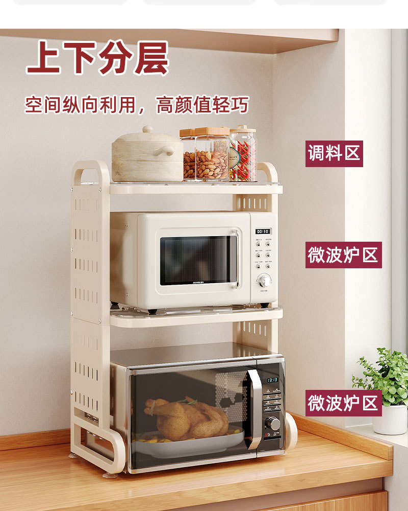 주방 가정용 조명 고급 전자 레인지 보관함 조리대 오븐 밥솥 에어 프라이어 전기 제품 다층 보관함스토어 가기