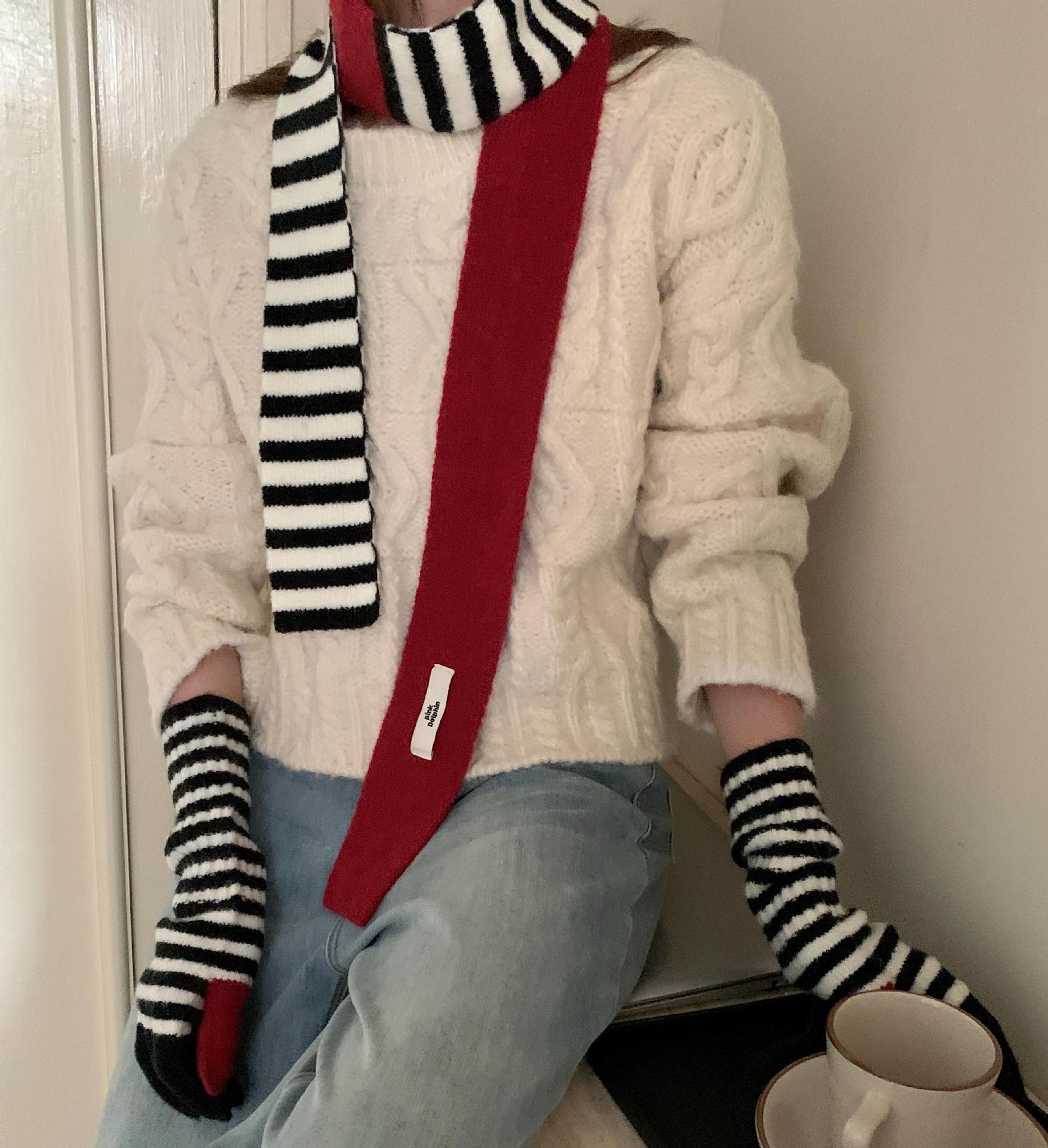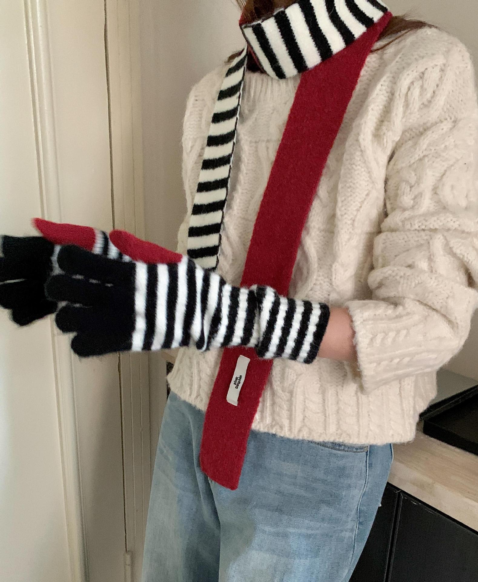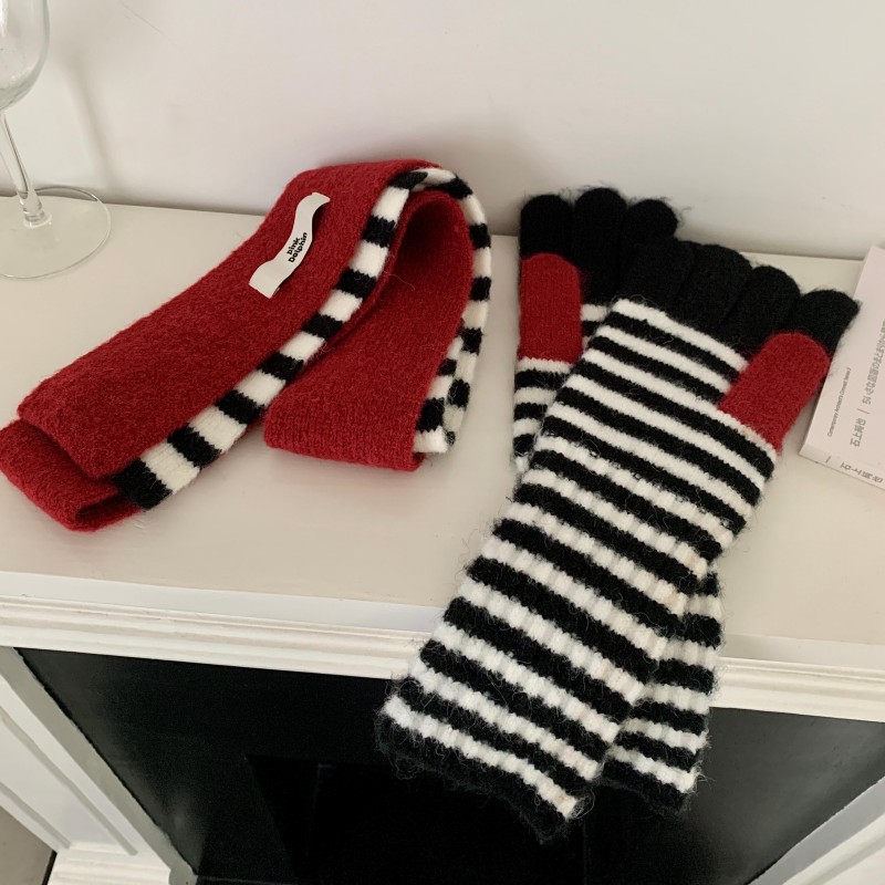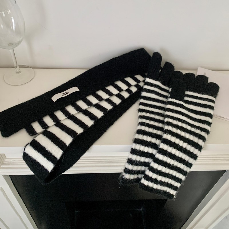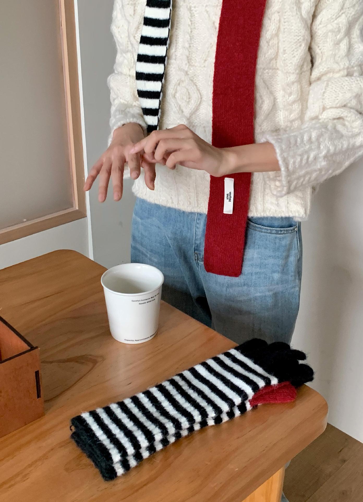 2025 한국 스타일 새로운 겨울 줄무늬 스카프 소년과 소녀 캐주얼 복고풍 따뜻한 장갑 스타일 패션 다목적스토어 가기