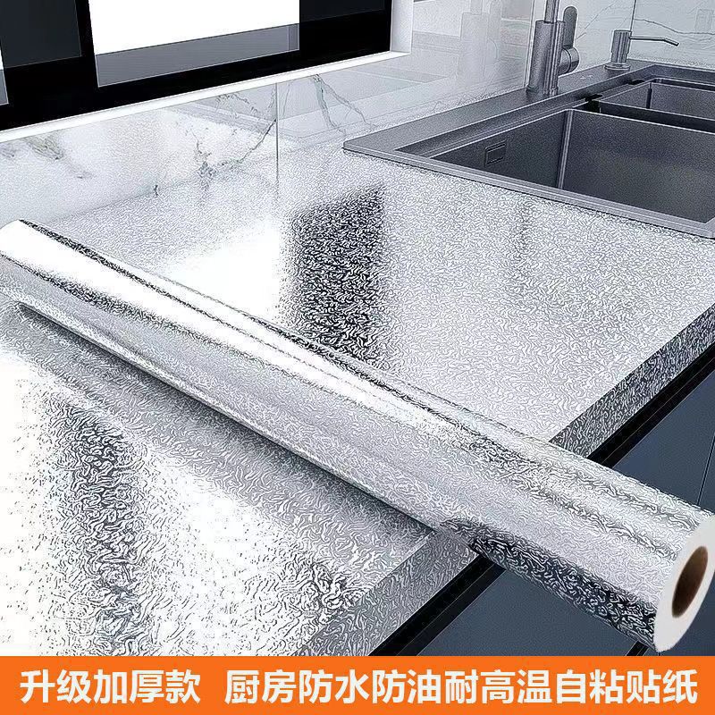 두꺼운 20m 주방 방수 및 내유성 스티커 고온 방지 벽 스티커 방습 벽지 자체 접착 조리대 캐비닛 알루미늄 호일 종이