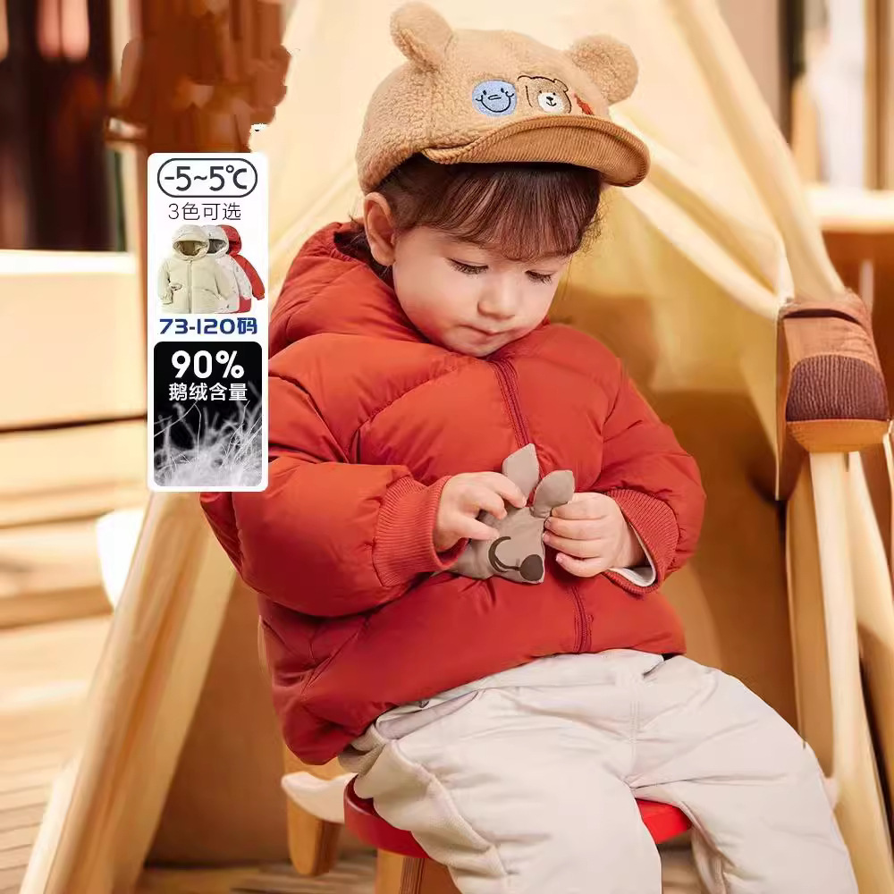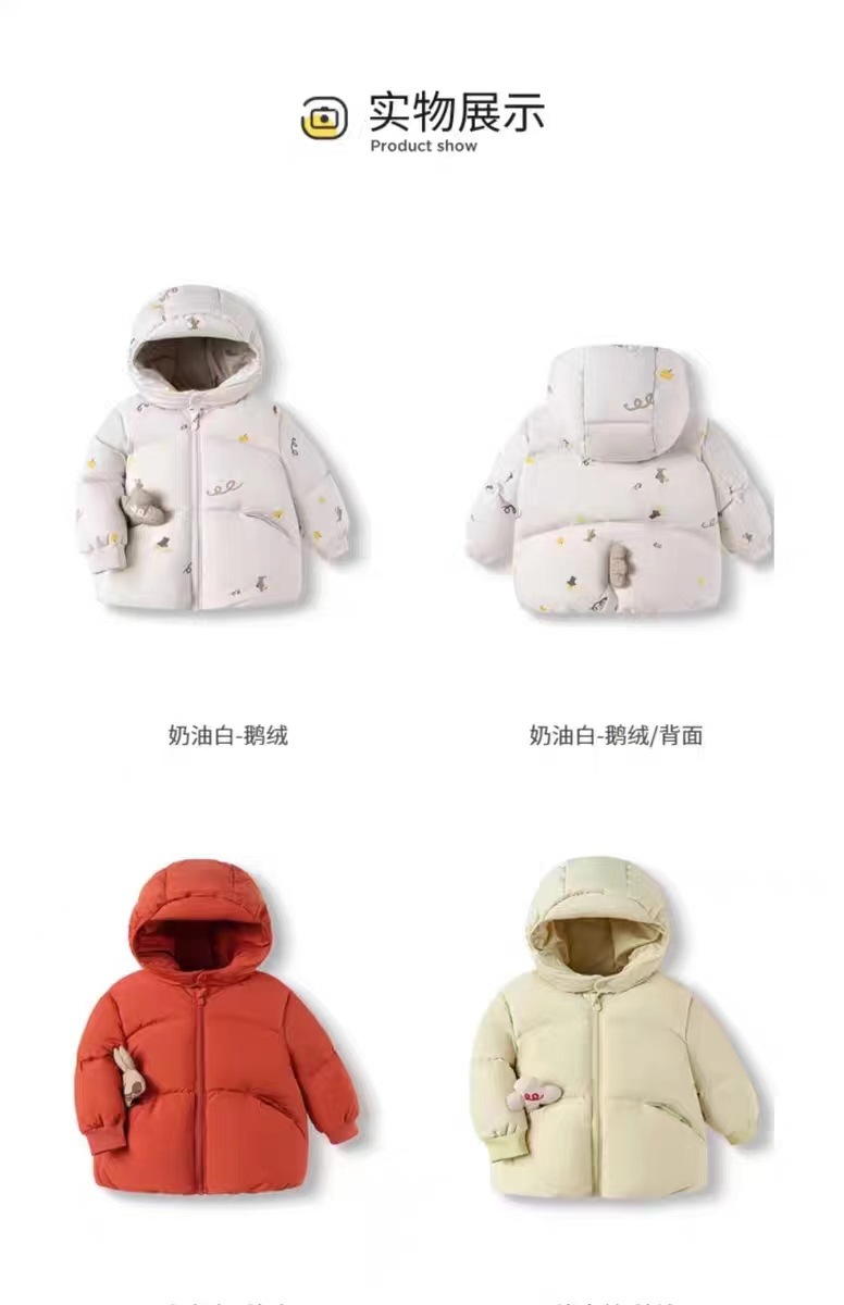 反季折扣童装男童羽绒服2023新款婴儿冬装鹅绒短款女童加厚外套潮
