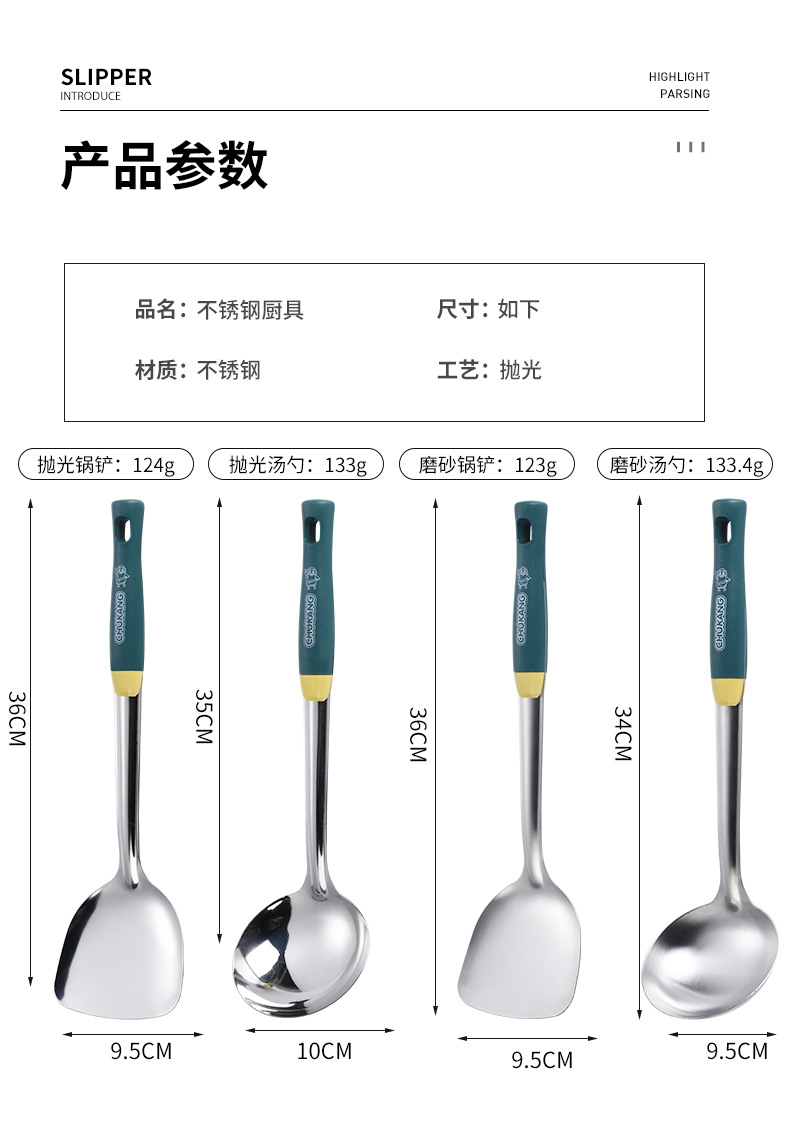 도매 조리기구 스테인레스 스틸 주걱 요리 주걱 수프 스푼 요리사 프라이팬 스푼 가정용 요리 도구 주방 세트