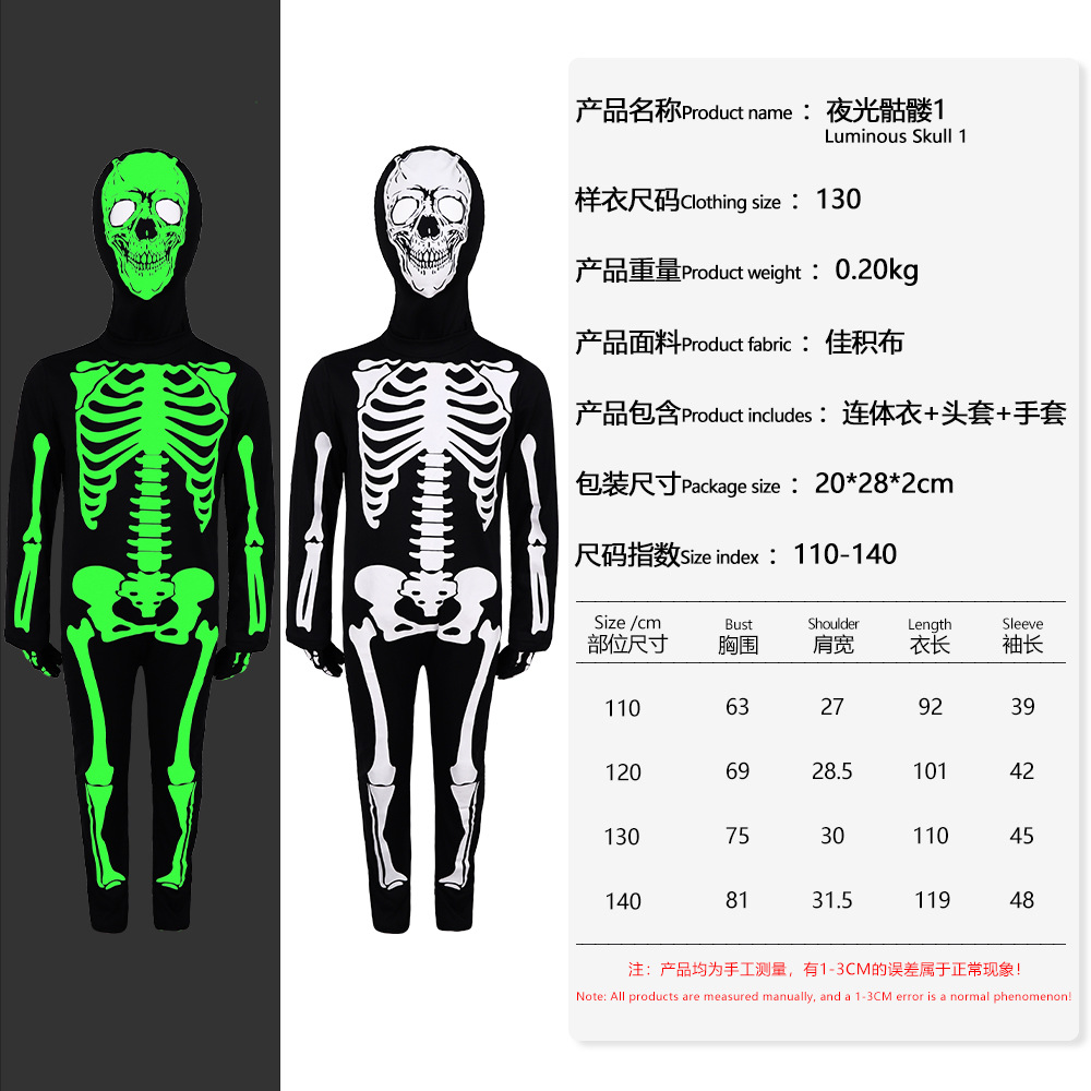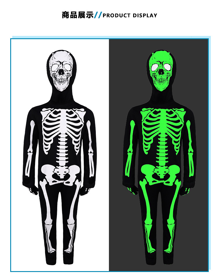 국경 간 할로윈 빛나는 해골 코스프레 어린이 의상 결합 무대 쇼 가장 무도회 파티스토어 가기