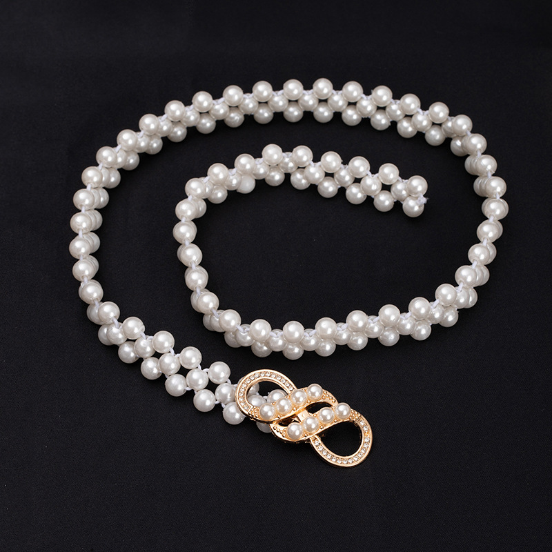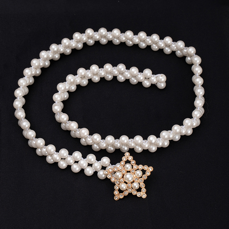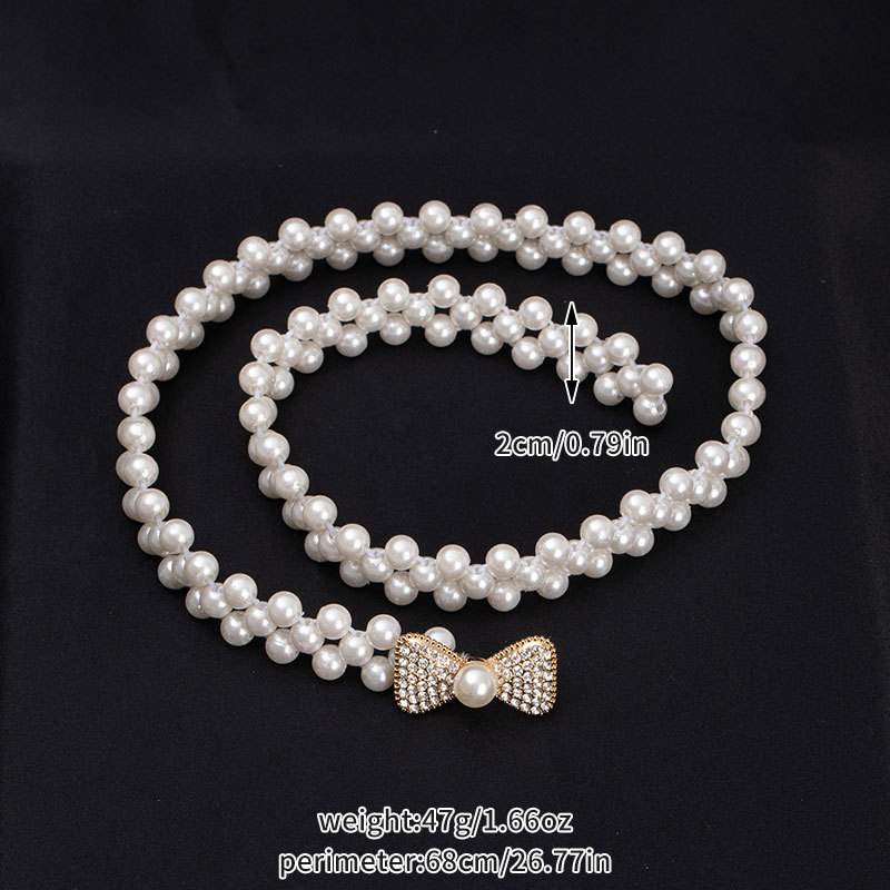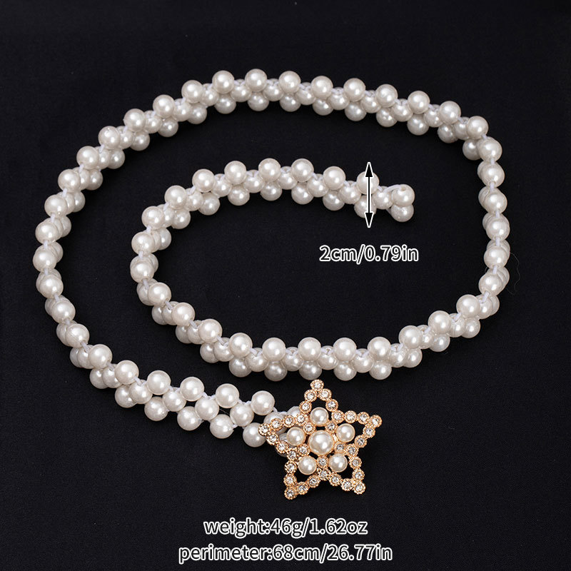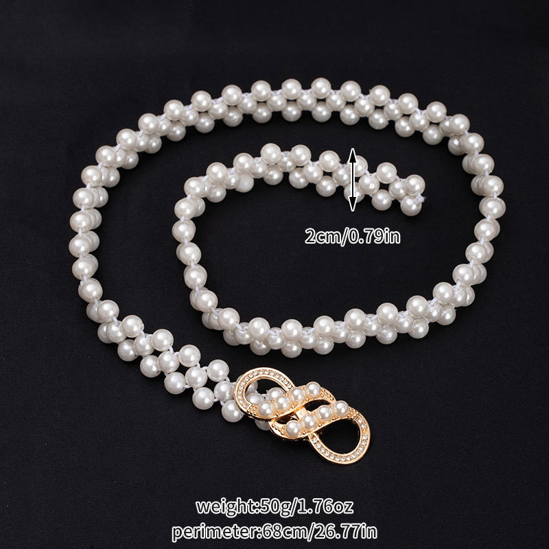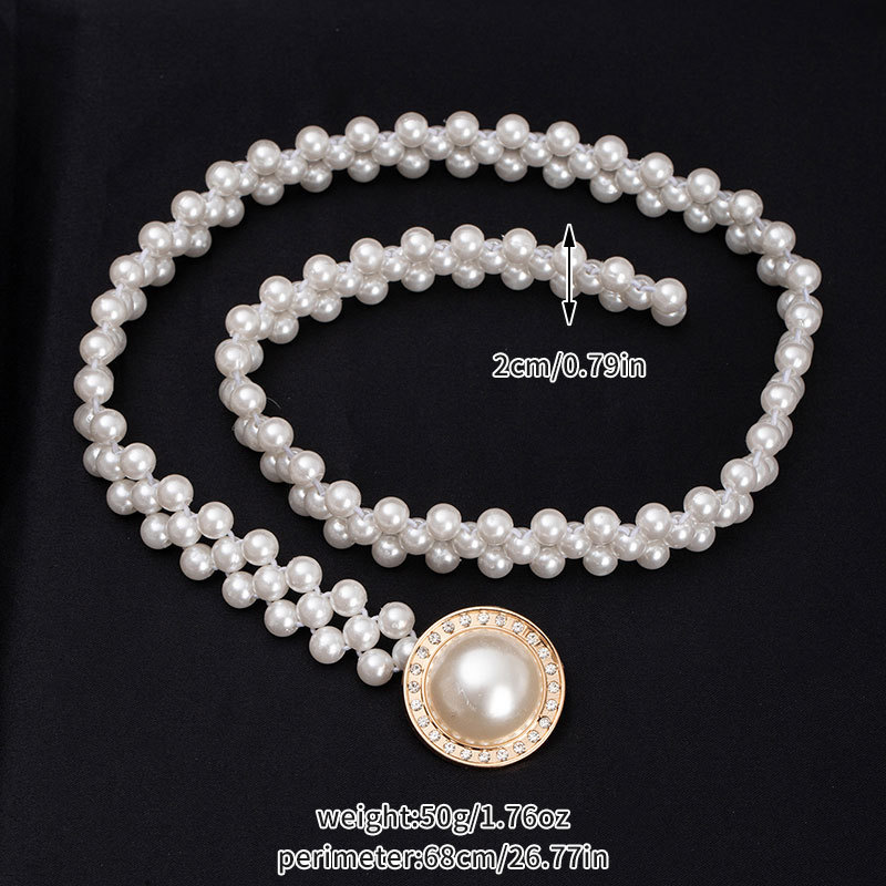 珍珠腰链女士大珍珠镶钻弹力收腰装饰配裙子细腰带串珠松紧皮带女饰品批发货源