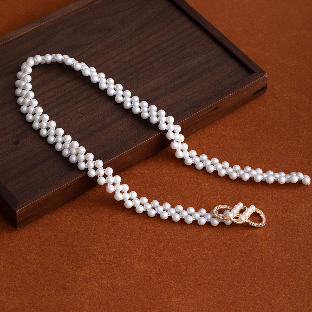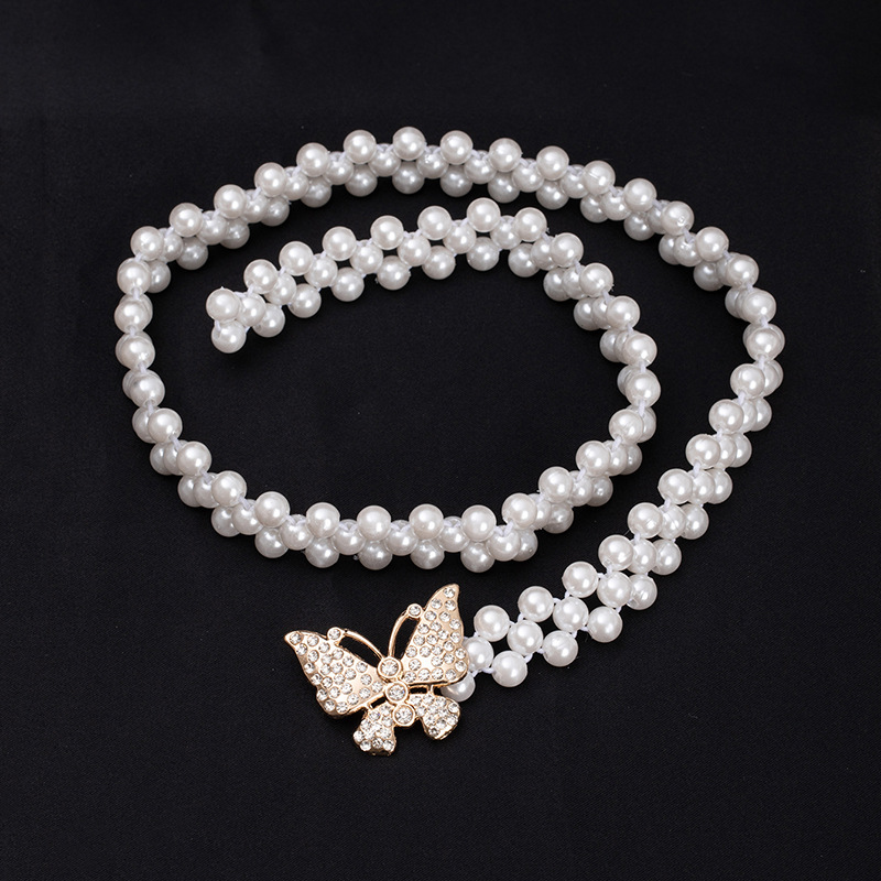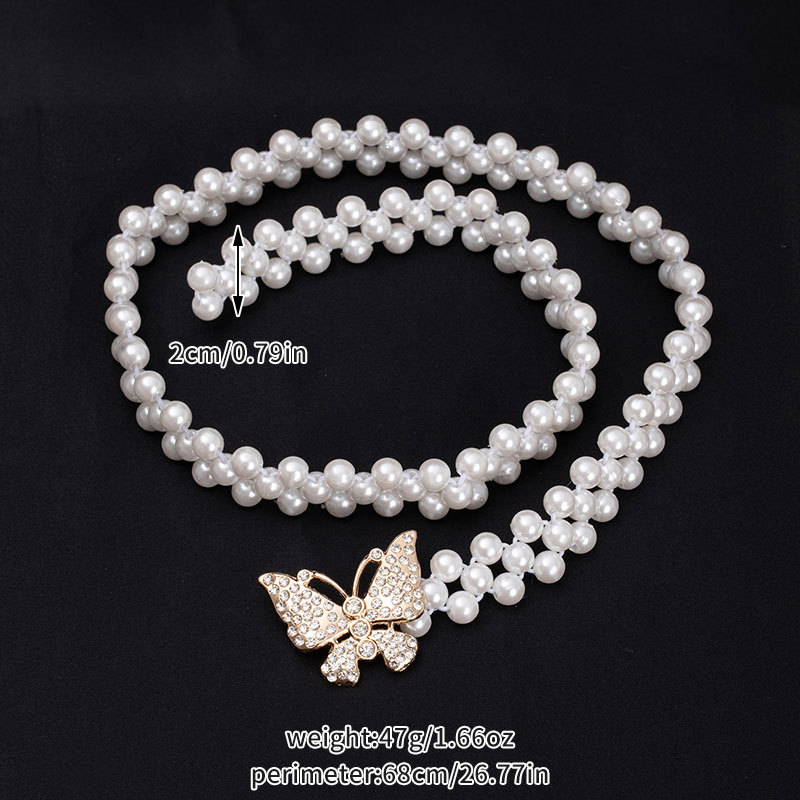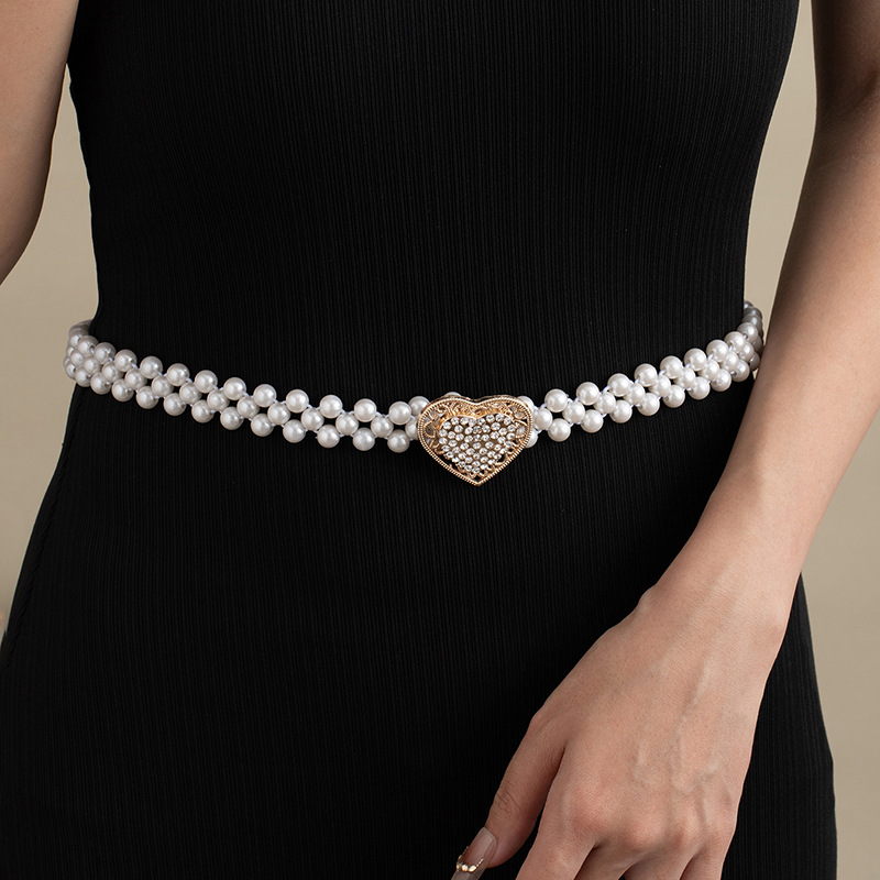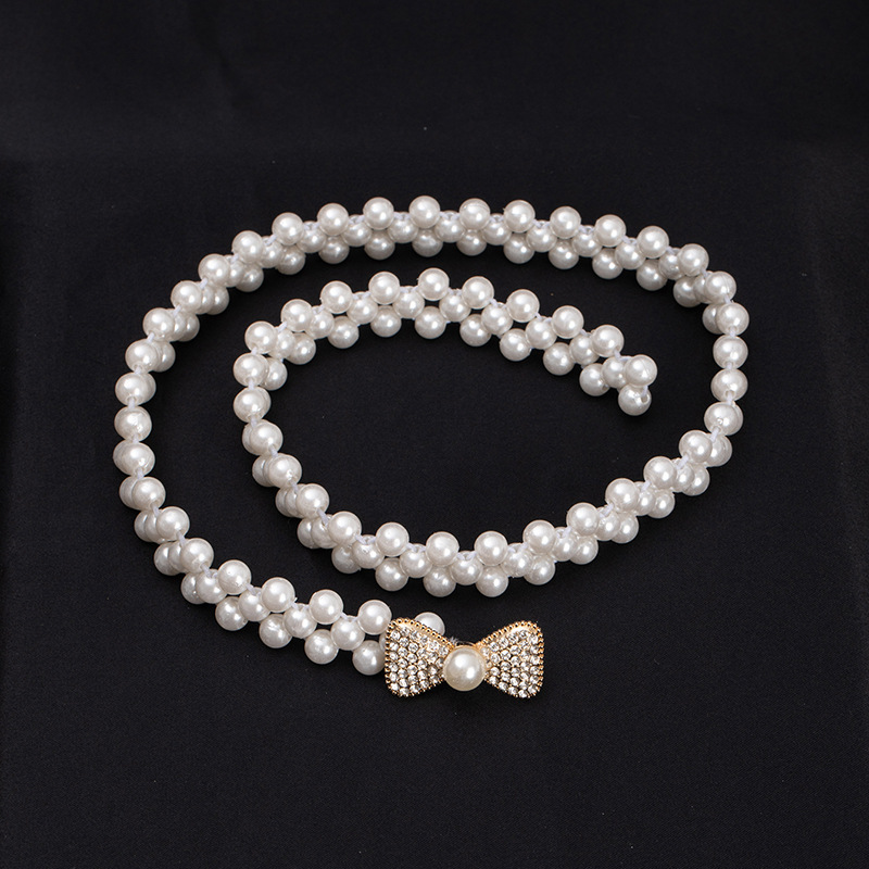 珍珠腰链女士大珍珠镶钻弹力收腰装饰配裙子细腰带串珠松紧皮带女饰品批发货源
