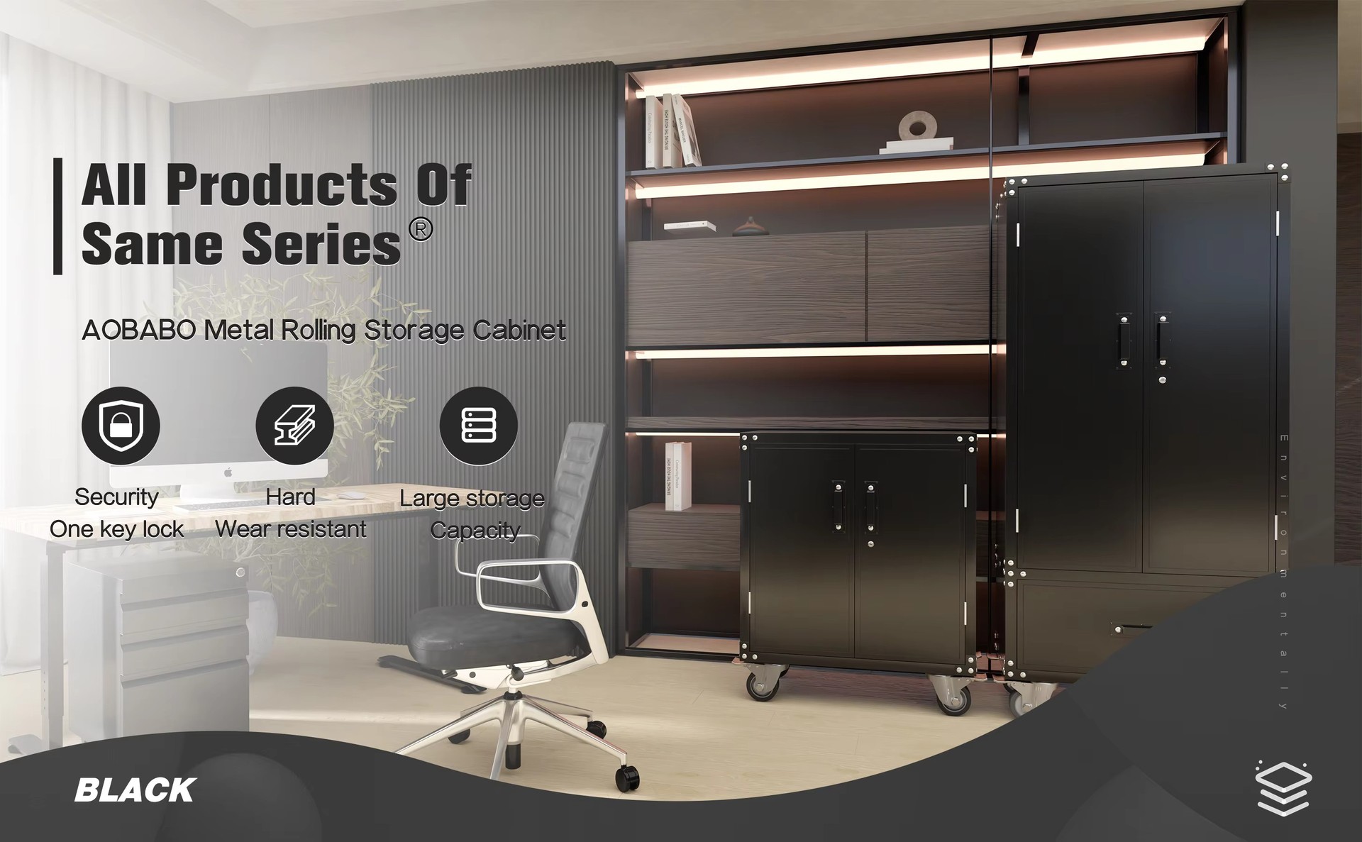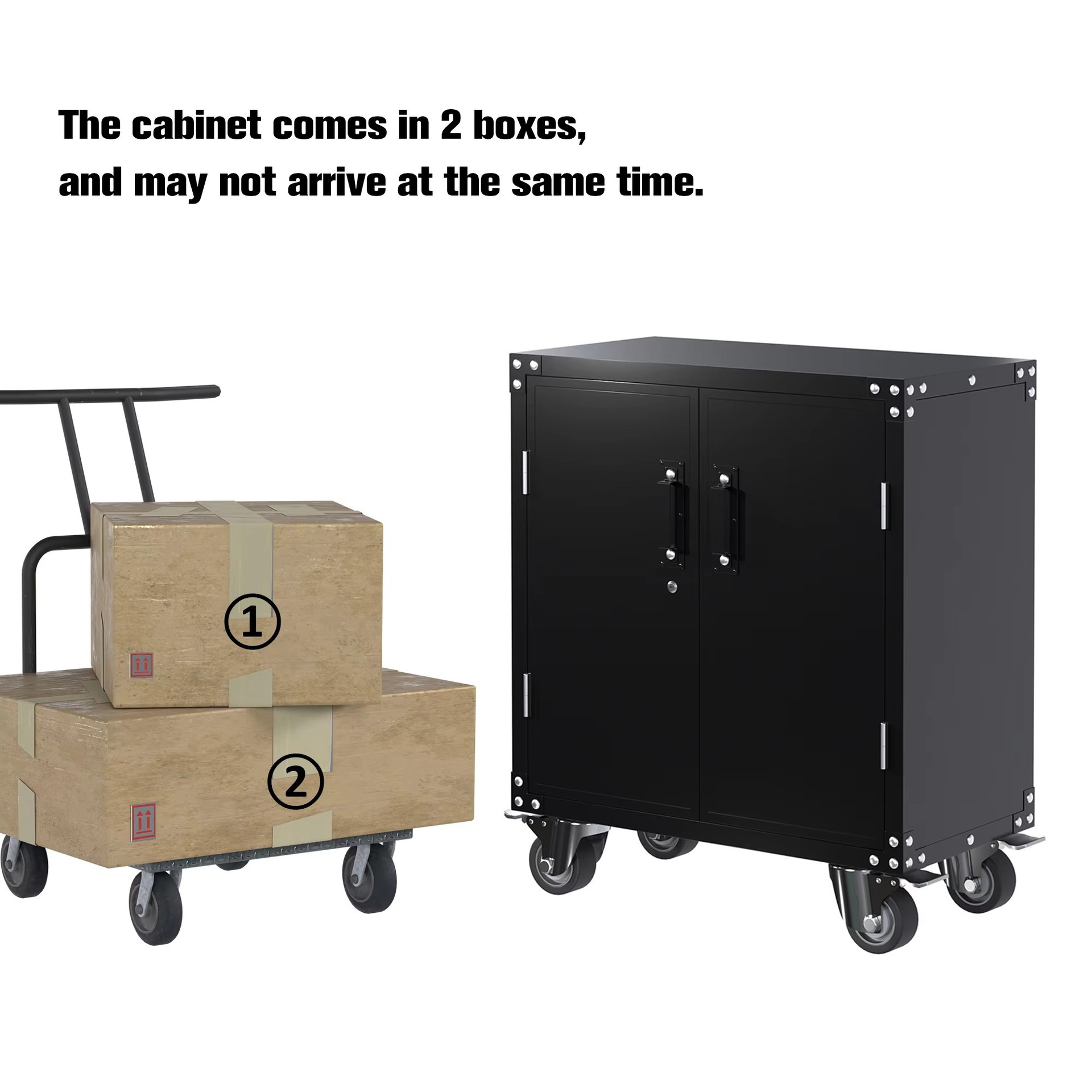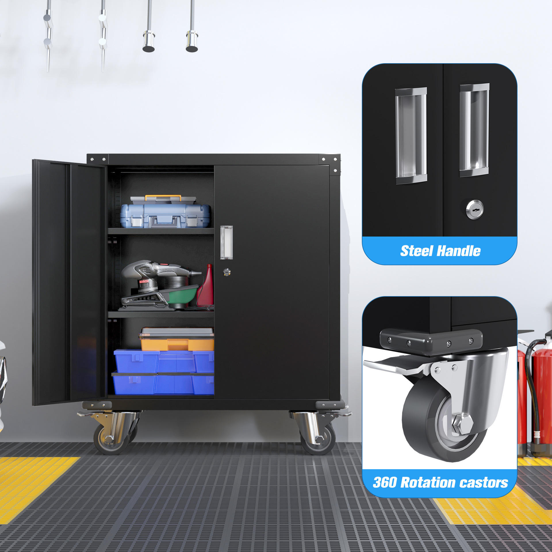 잠금 장치가 있는 검은색 강철 바퀴 달린 이동식 낮은 캐비닛 작업장 사무실 가정용 도구 캐비닛 바퀴는 보관을 위해 고정할 수 있습니다.스토어 가기