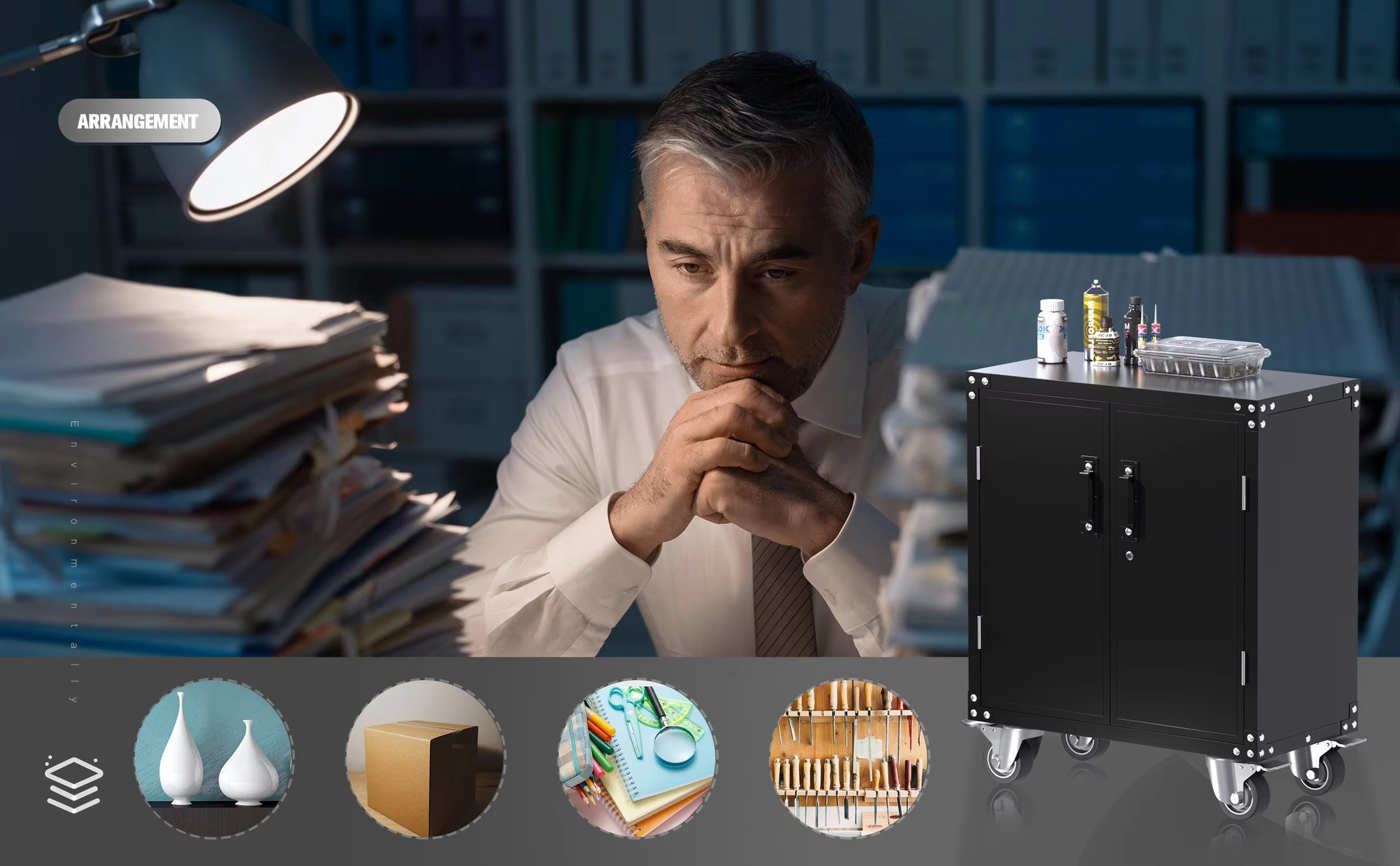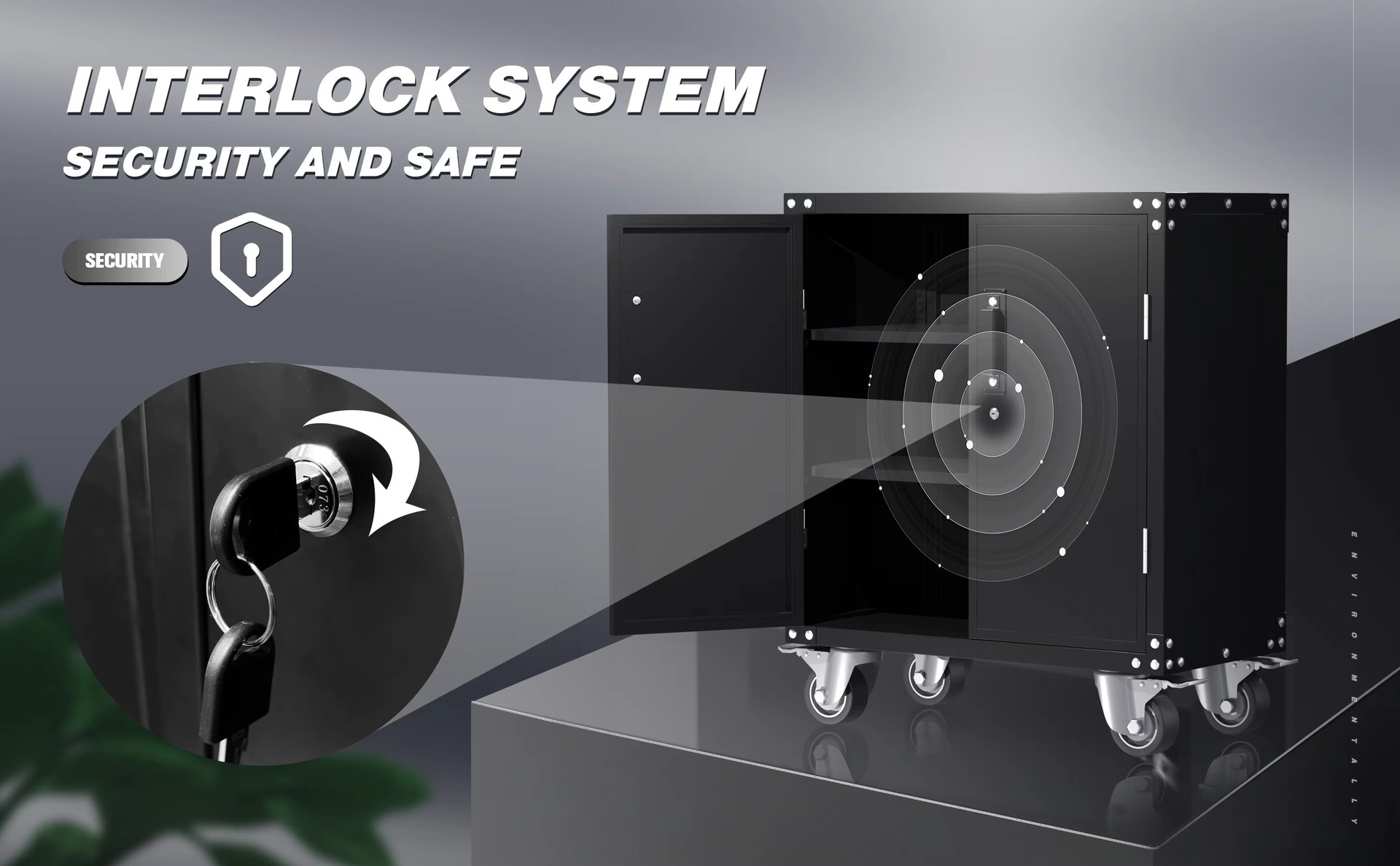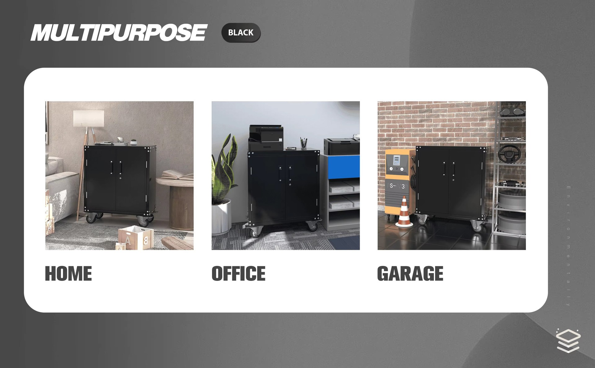 잠금 장치가 있는 검은색 강철 바퀴 달린 이동식 낮은 캐비닛 작업장 사무실 가정용 도구 캐비닛 바퀴는 보관을 위해 고정할 수 있습니다.스토어 가기