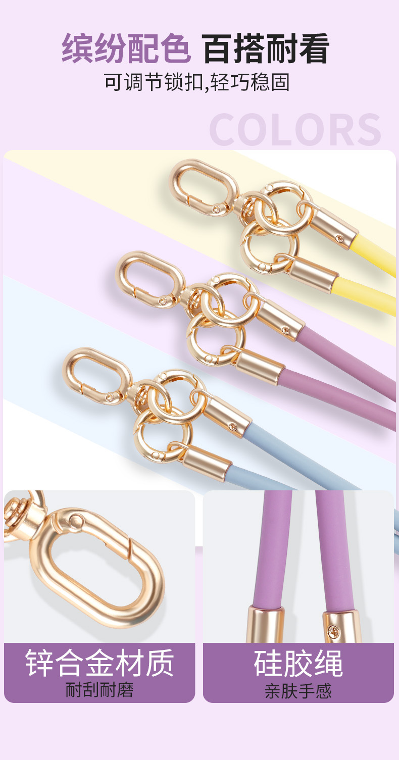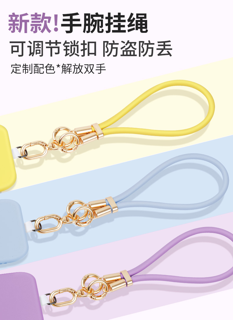 짧은 길이의 조절 가능한 실리콘 휴대폰 스트랩, 부드럽고 피부 친화적인 도파민 색상의 고급 패션 휴대용 손목 스트랩