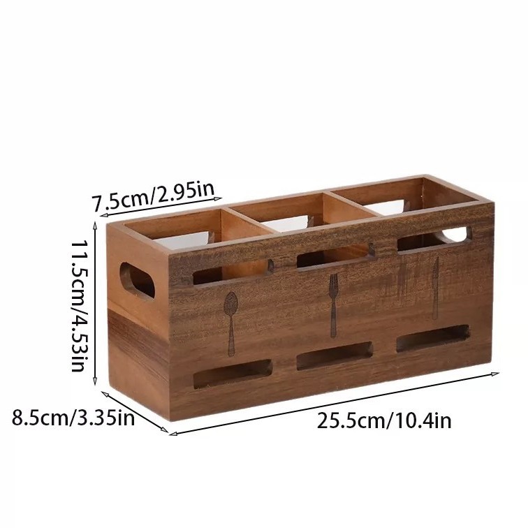 아카시아나무 다중 그리드 식기 상자, 중공, 통풍 및 곰팡이 방지, 칼, 포크, 스푼 및 젓가락 분류 보관 상자, 데스크탑 보관 상자