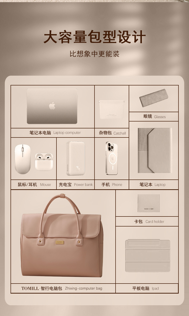 • Zhixing 컴퓨터 가방 - 밀크셰이크 브라운