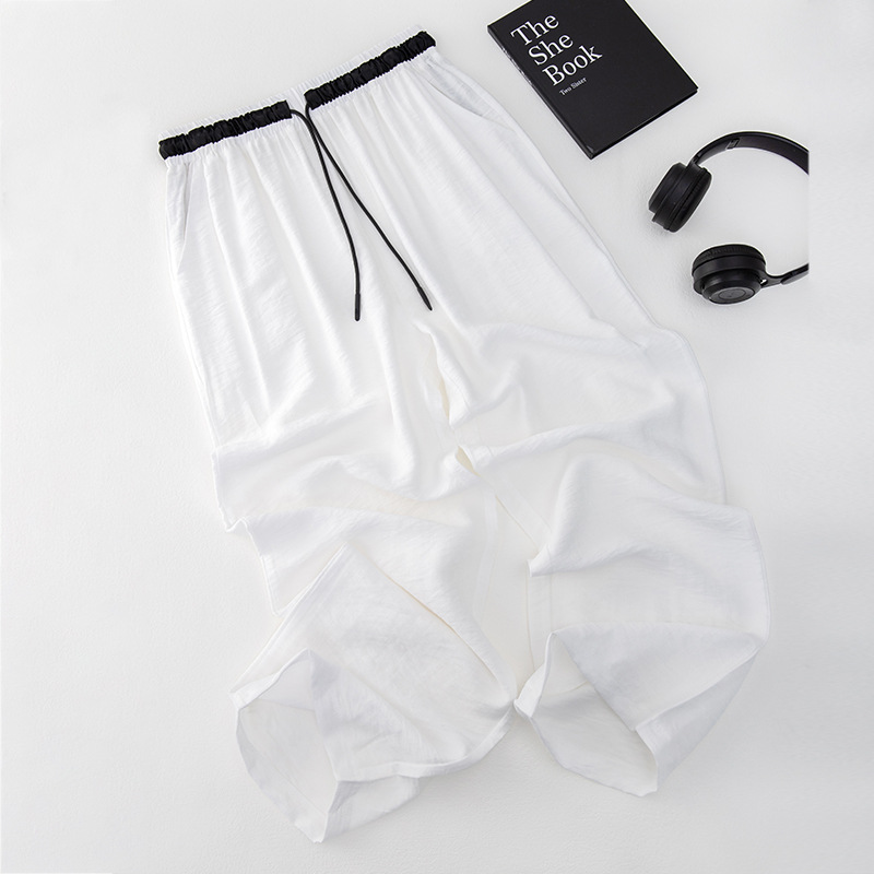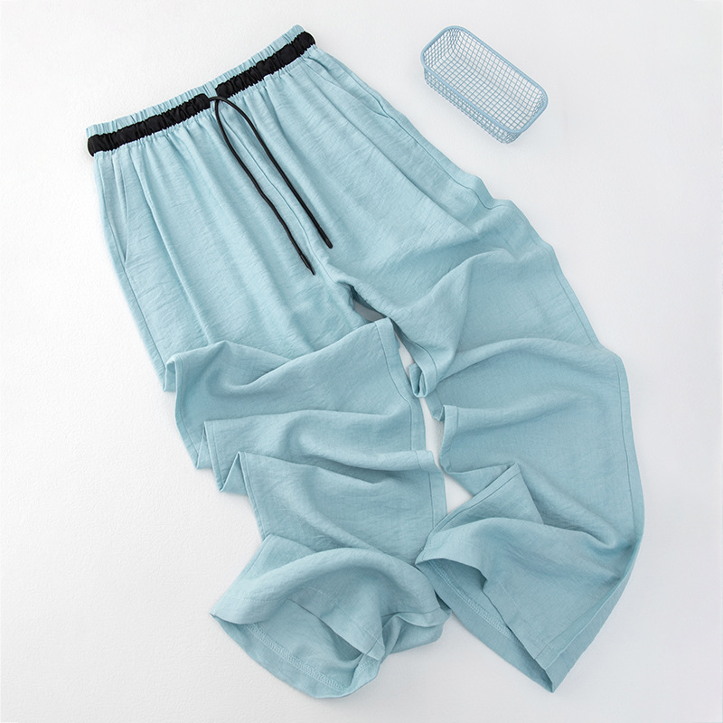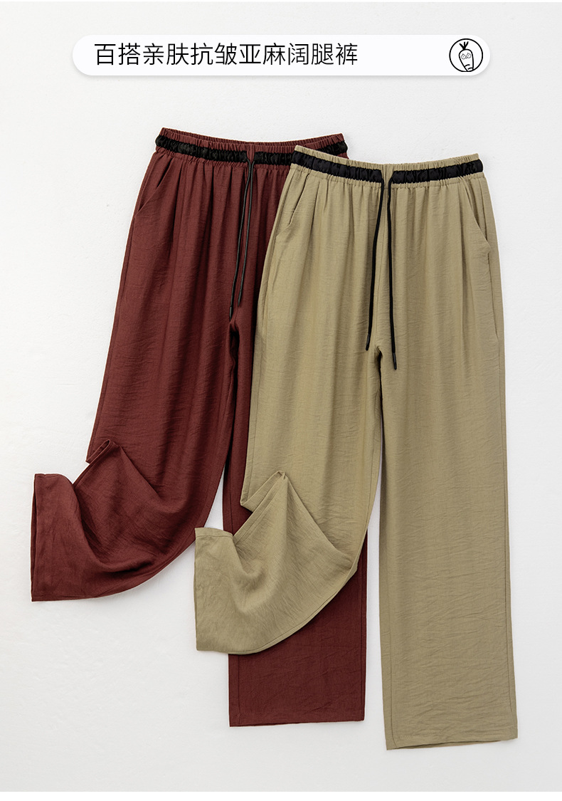 샤오홍슈 인기 린넨 와이드 팬츠 여성 캐주얼 팬츠 하이웨이스트 루즈 더블 디자인 드레이프 레이스업 스트레이트 팬츠스토어 가기