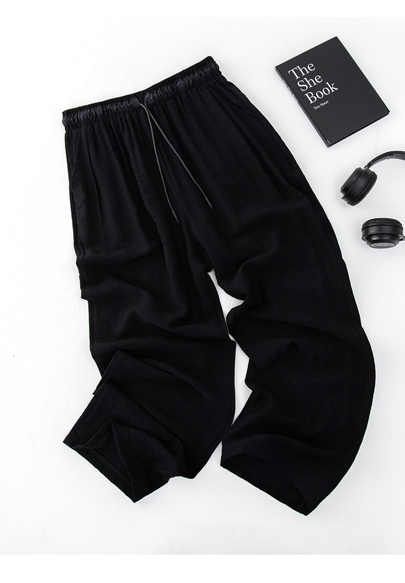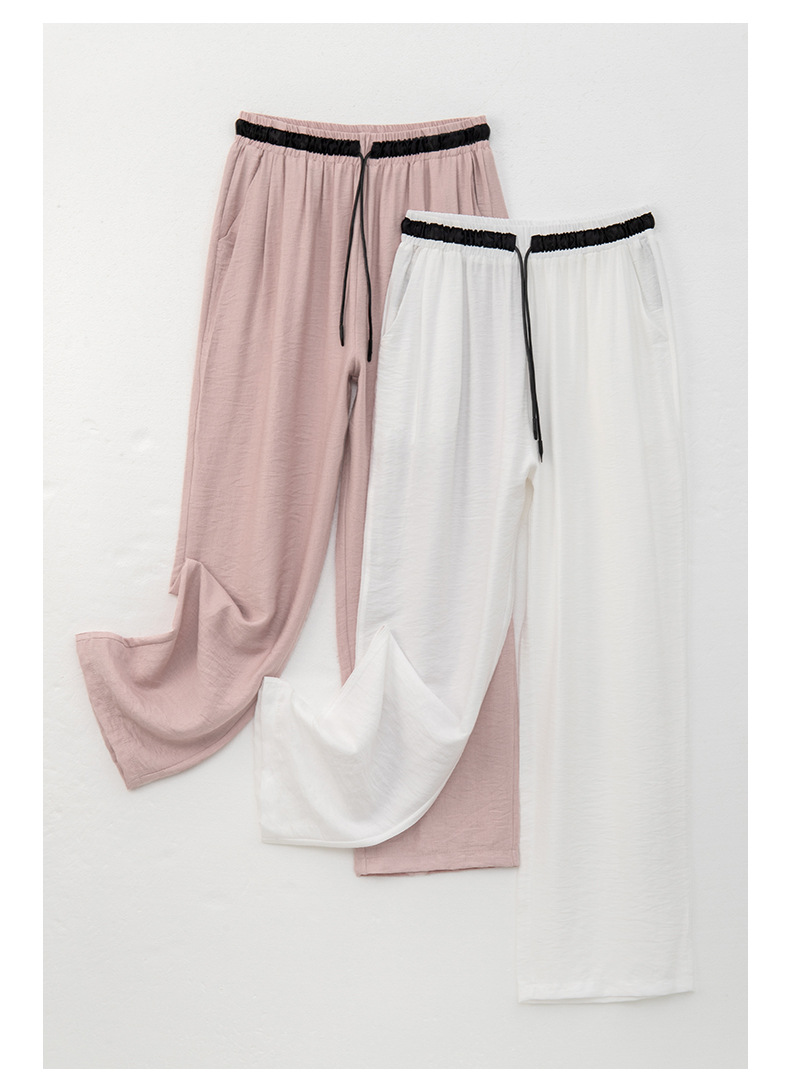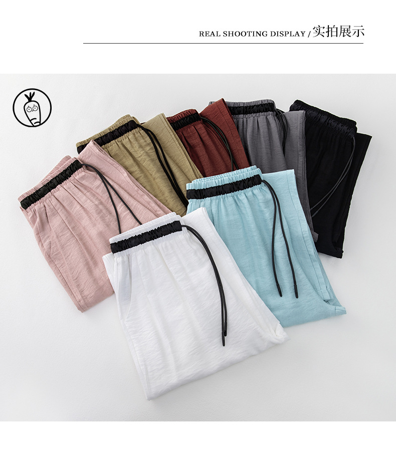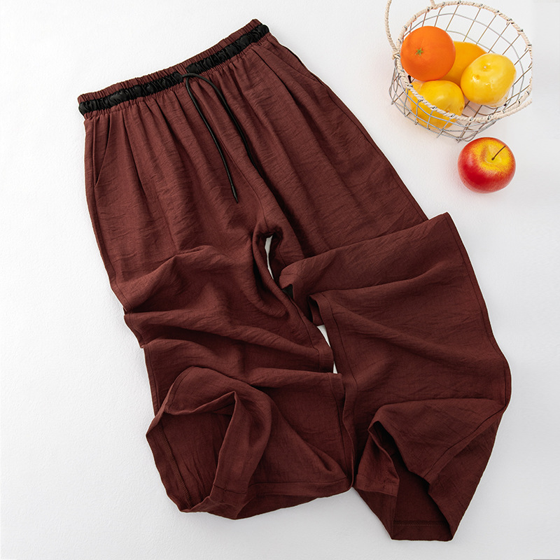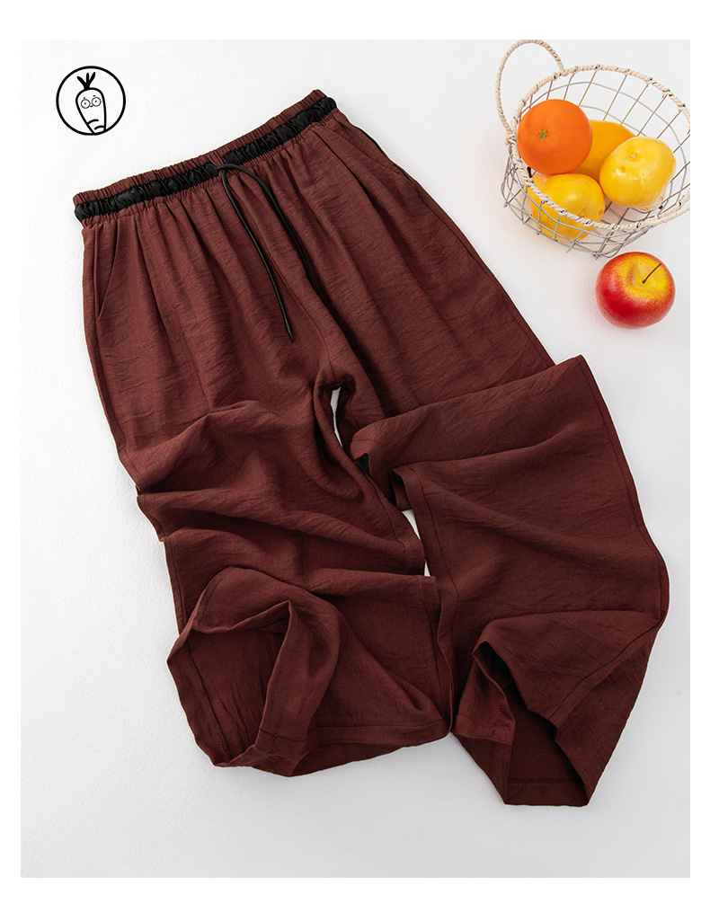 샤오홍슈 인기 린넨 와이드 팬츠 여성 캐주얼 팬츠 하이웨이스트 루즈 더블 디자인 드레이프 레이스업 스트레이트 팬츠