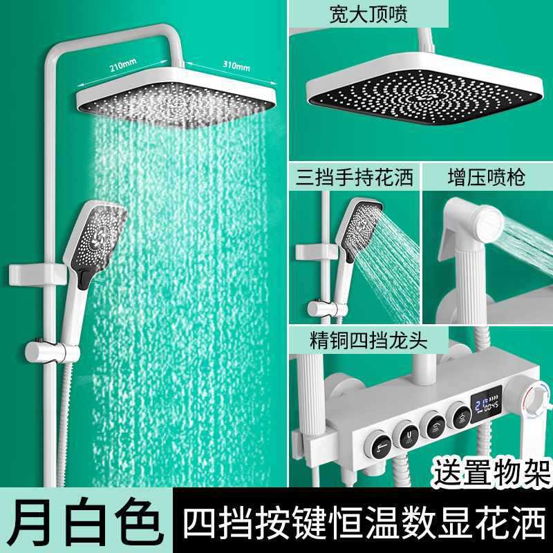 • ★※☆문 화이트 4스톱 버튼 항온 디지털 디스플레이 샤워 헤드★※☆