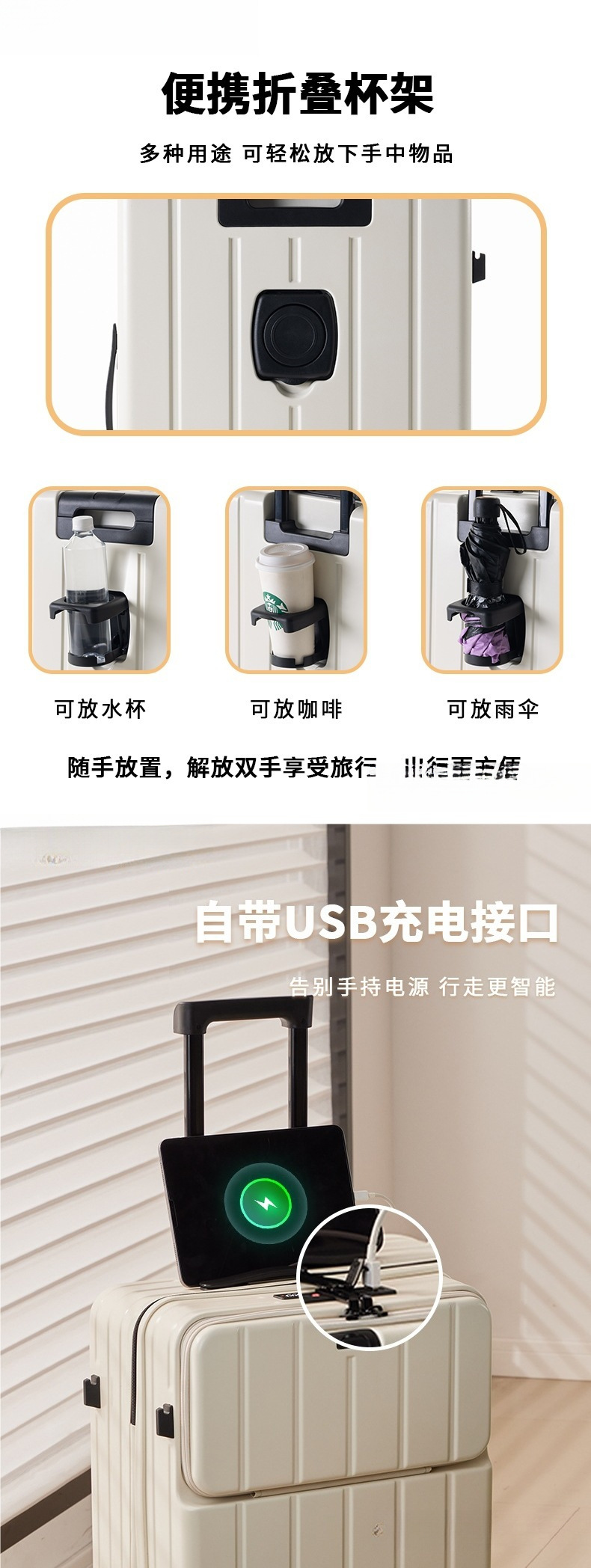 • 20inch 기내 캐리어 [물컵홀더, 충전포트, 전면개폐커버, 패셔너블한 단거리 여행]