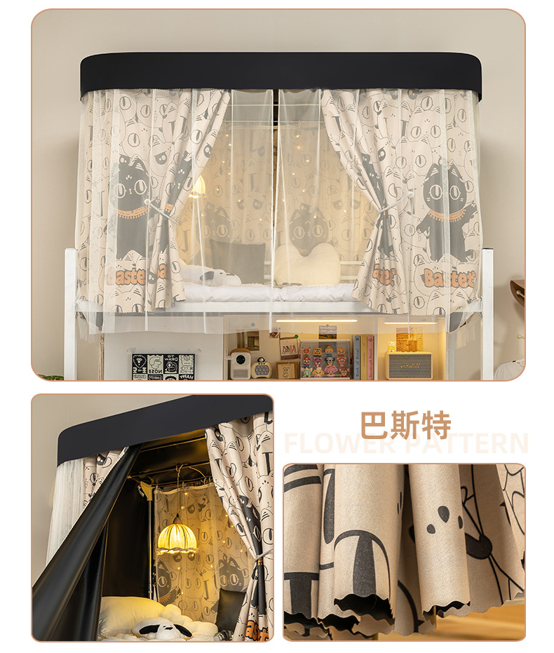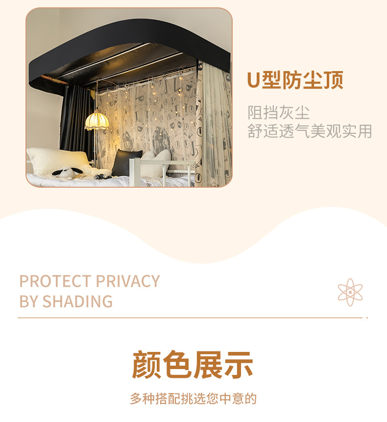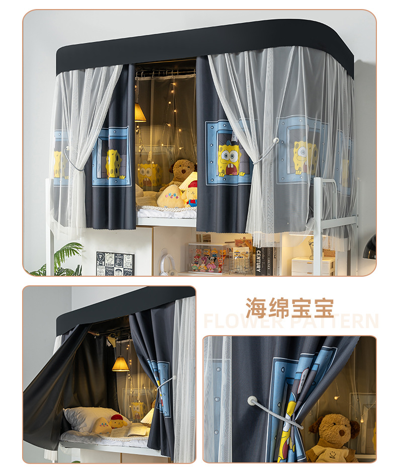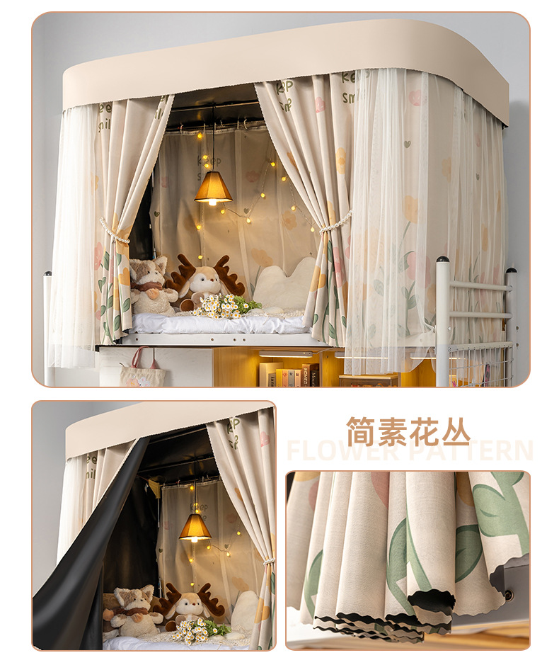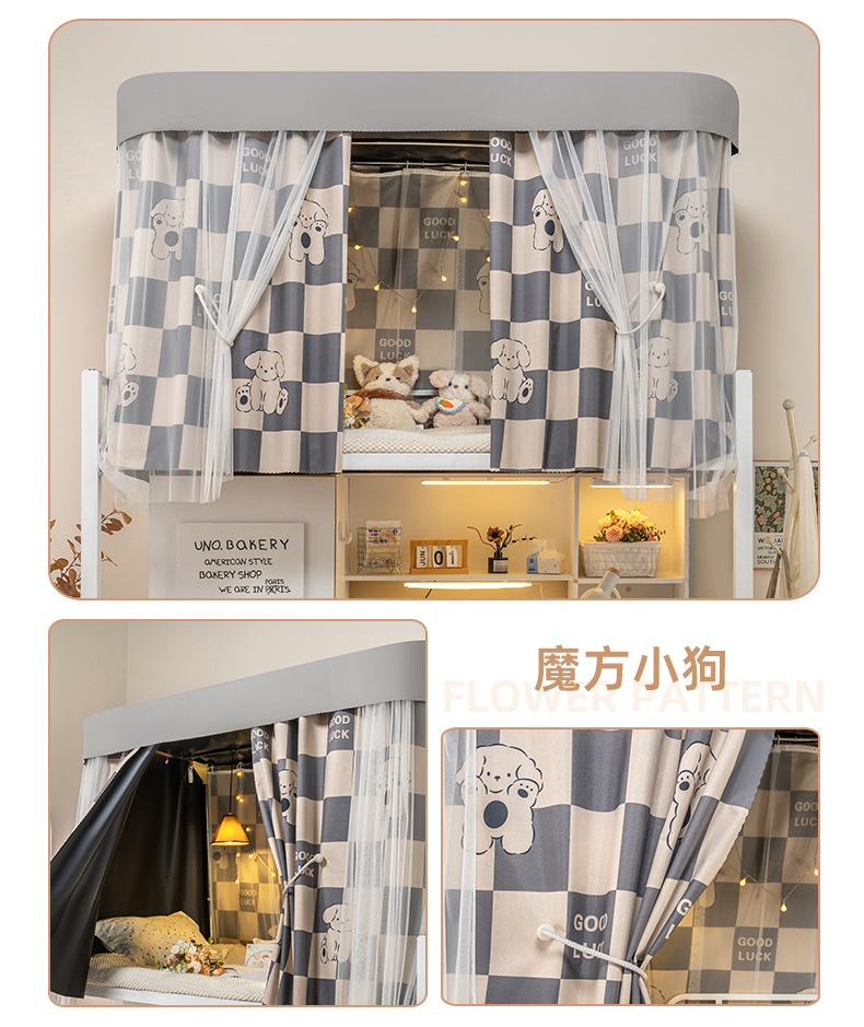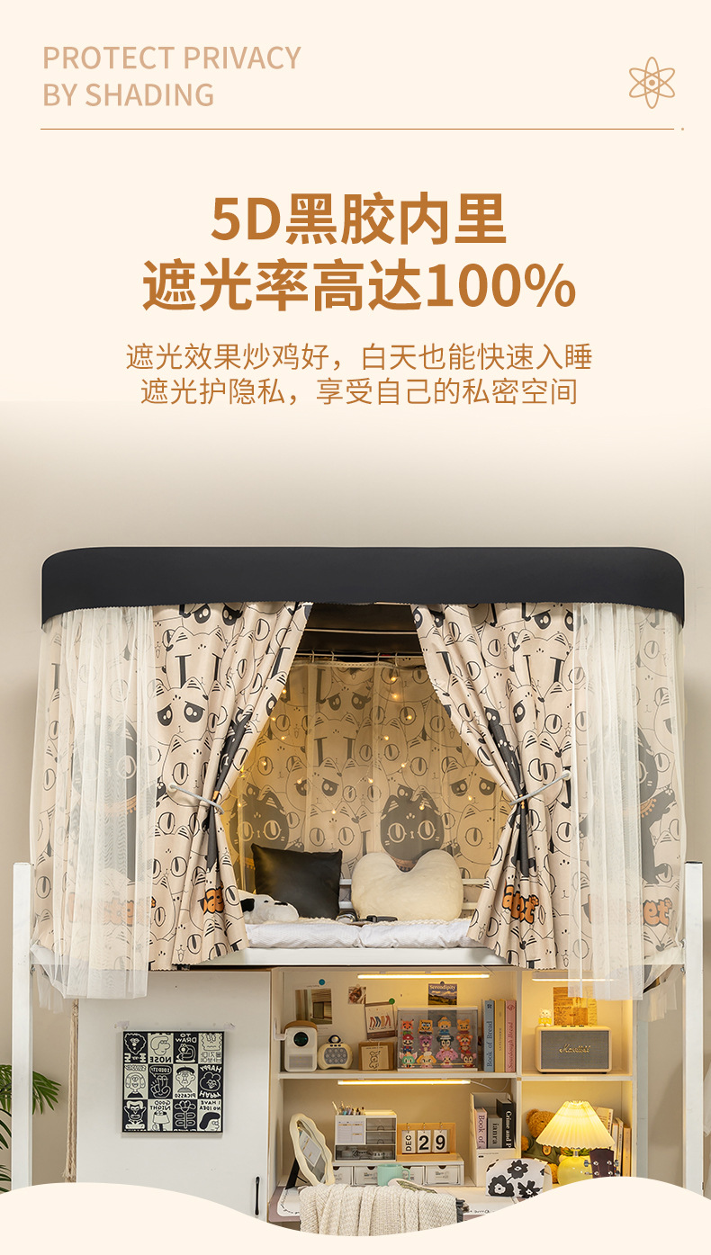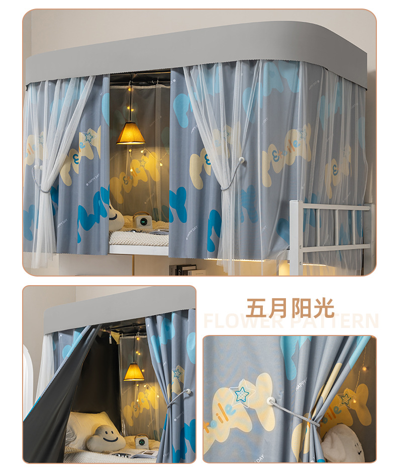 맞춤형 U자형 이중 슬라이딩 트랙 학생 기숙사 침대 커튼 모기장 일체형 이층 침대 강력한 암막 커튼 침실스토어 가기