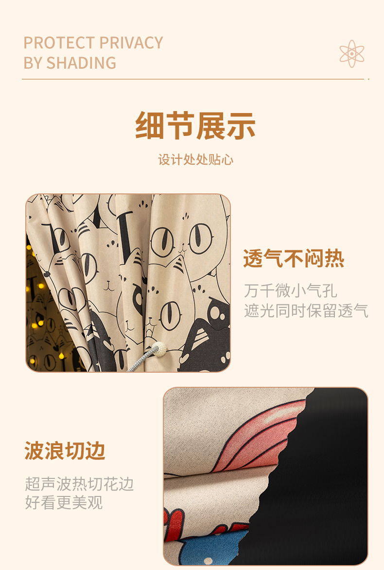 • 커튼 높이 1.5m [장난꾸러기 고양이] 100% 강력한 차광
