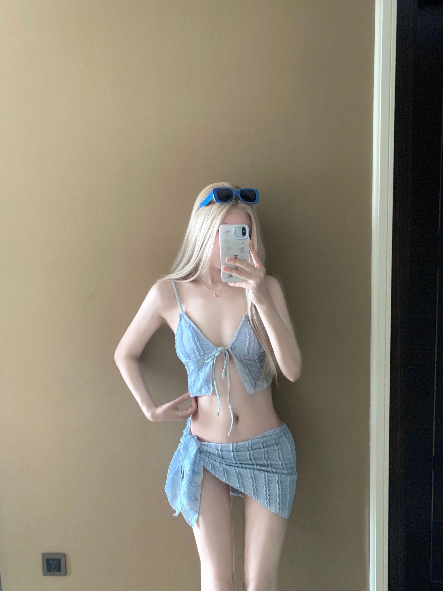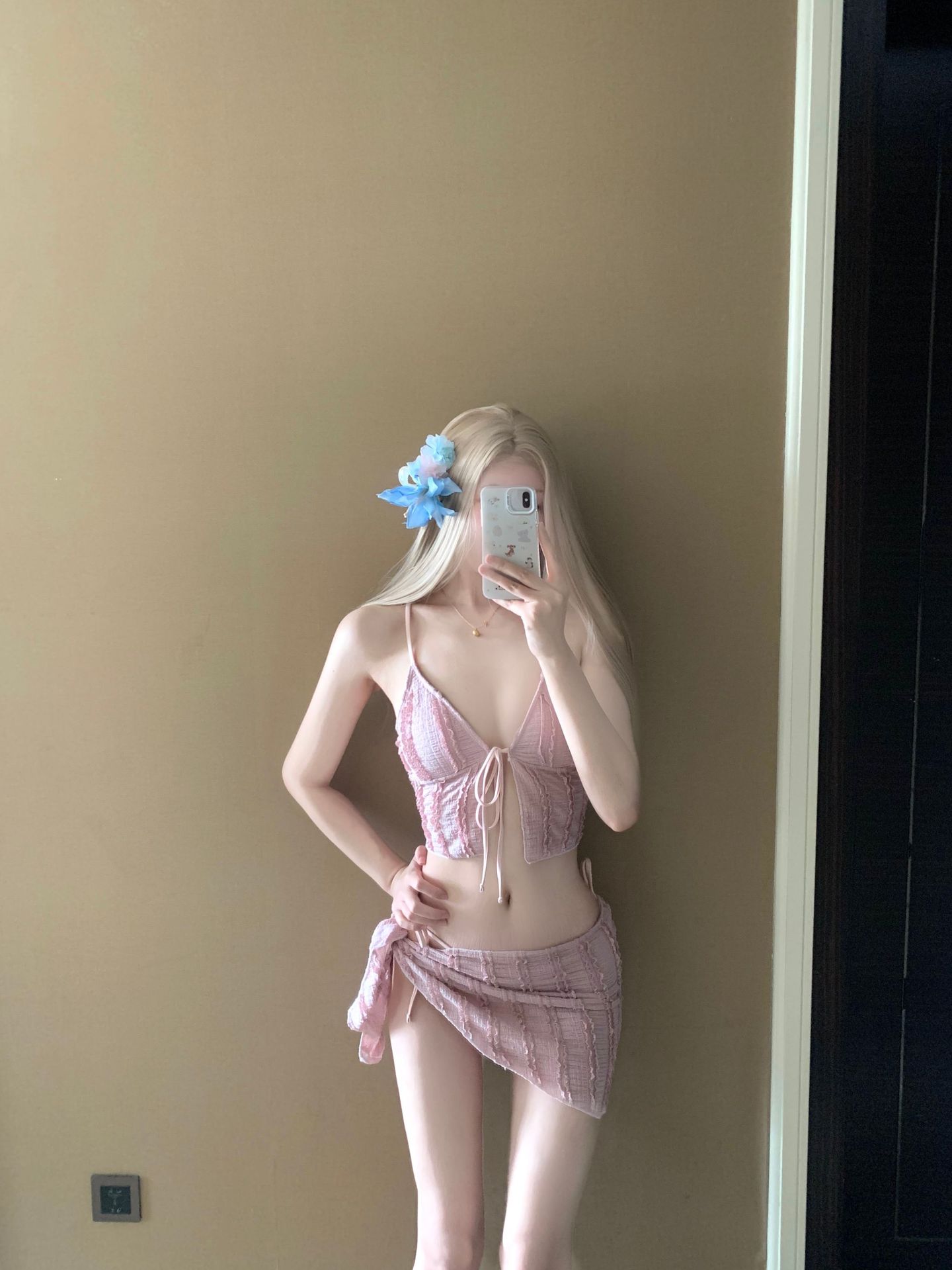 2026 신상 수영복 인스 스타일 비키니 3피스 세트 순수한 매력 온천 한국 작은 가슴 수영복 고급스러운 느낌스토어 가기