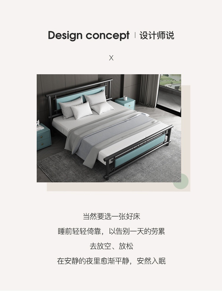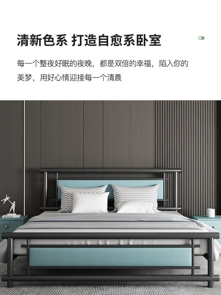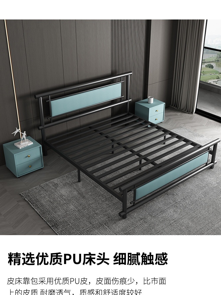 단철 침대 더블 1.8m 강화 철제 침대 라이트 럭셔리 아파트 임대실 1.5 싱글 침대 1m 공급 공장 배송스토어 가기