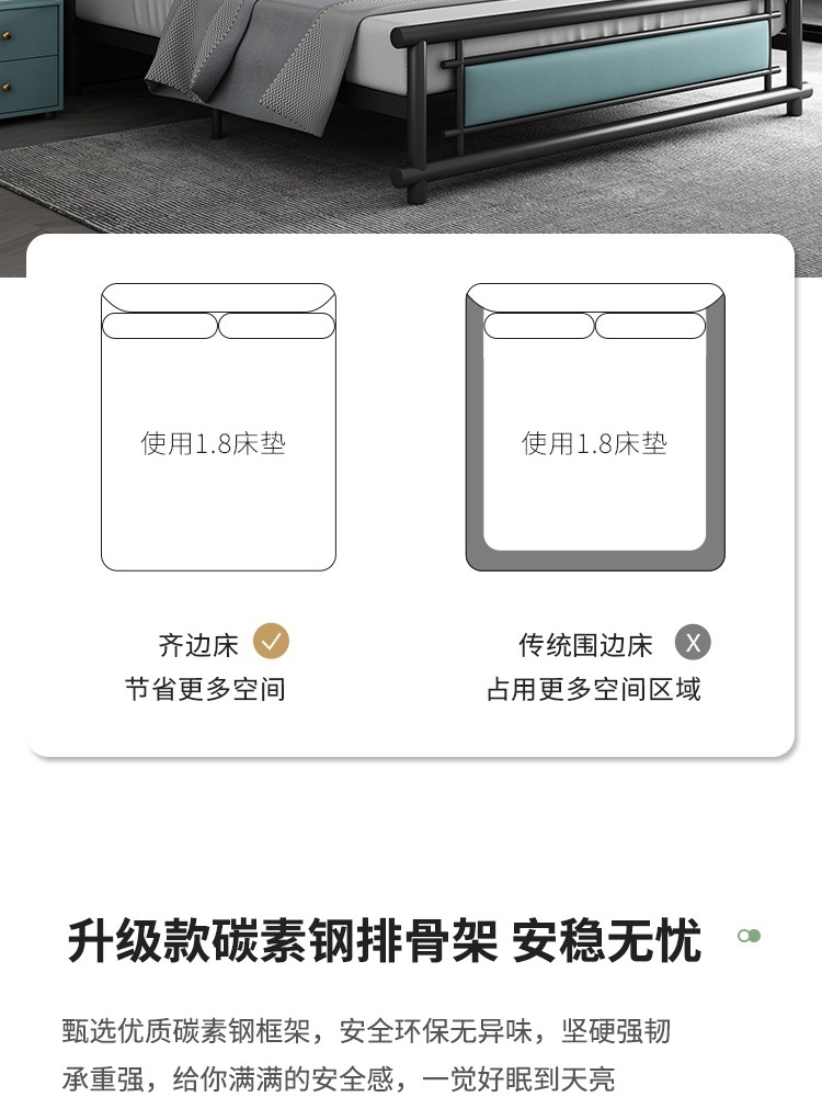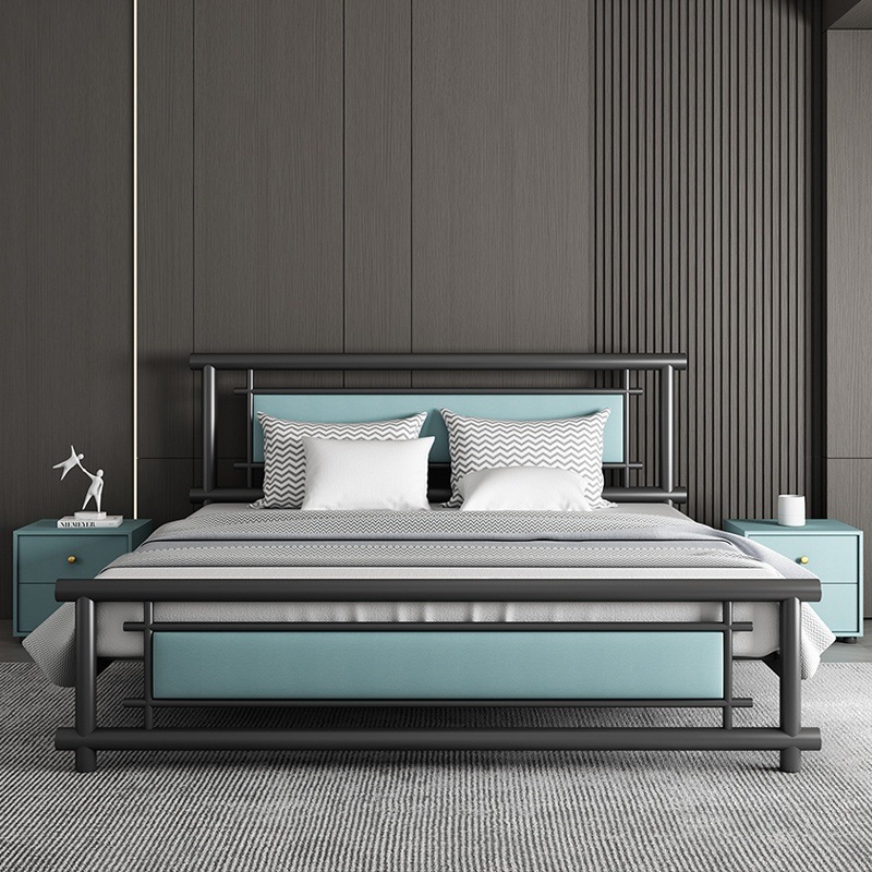 단철 침대 더블 1.8m 강화 철제 침대 라이트 럭셔리 아파트 임대실 1.5 싱글 침대 1m 공급 공장 배송