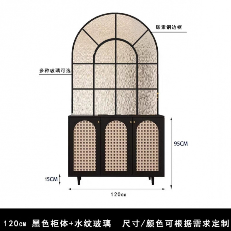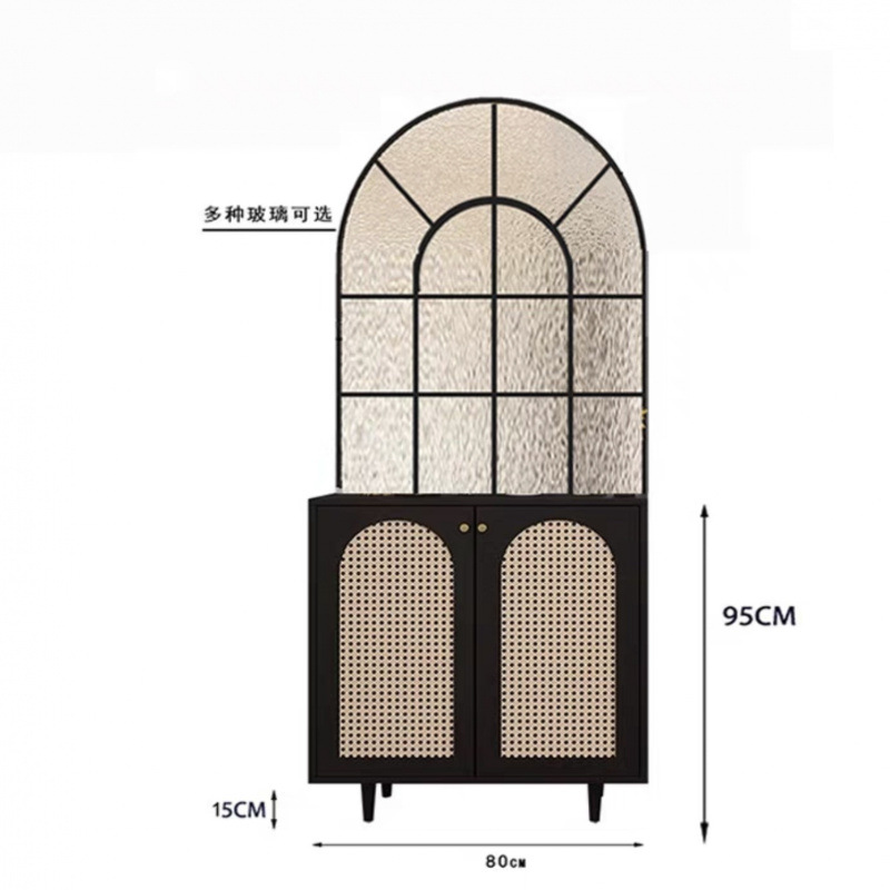 프렌치 레트로 현관 캐비닛, 신발장, 일체형 중세 스타일 유리 철제 현관문, 스크린 등나무 파티션 캐비닛스토어 가기