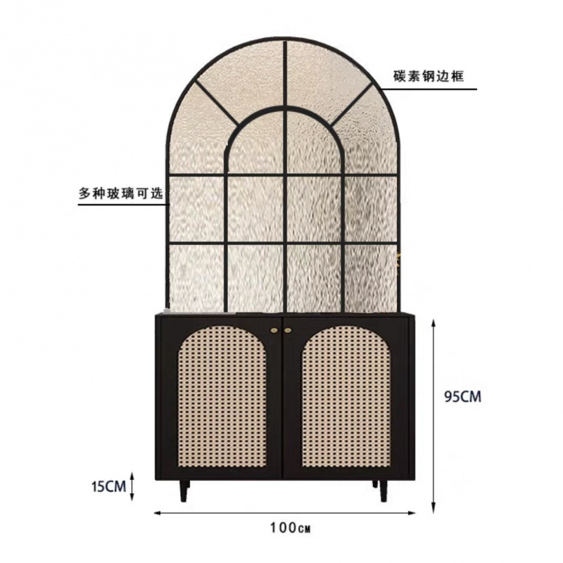 프렌치 레트로 현관 캐비닛, 신발장, 일체형 중세 스타일 유리 철제 현관문, 스크린 등나무 파티션 캐비닛