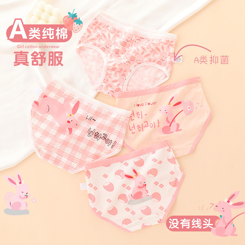 여아 클래스 A 순면 아기 속옷 항균 통기성 중간 허리 만화 학생 팬티 여아 반바지 속옷