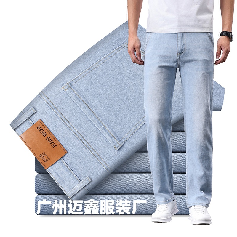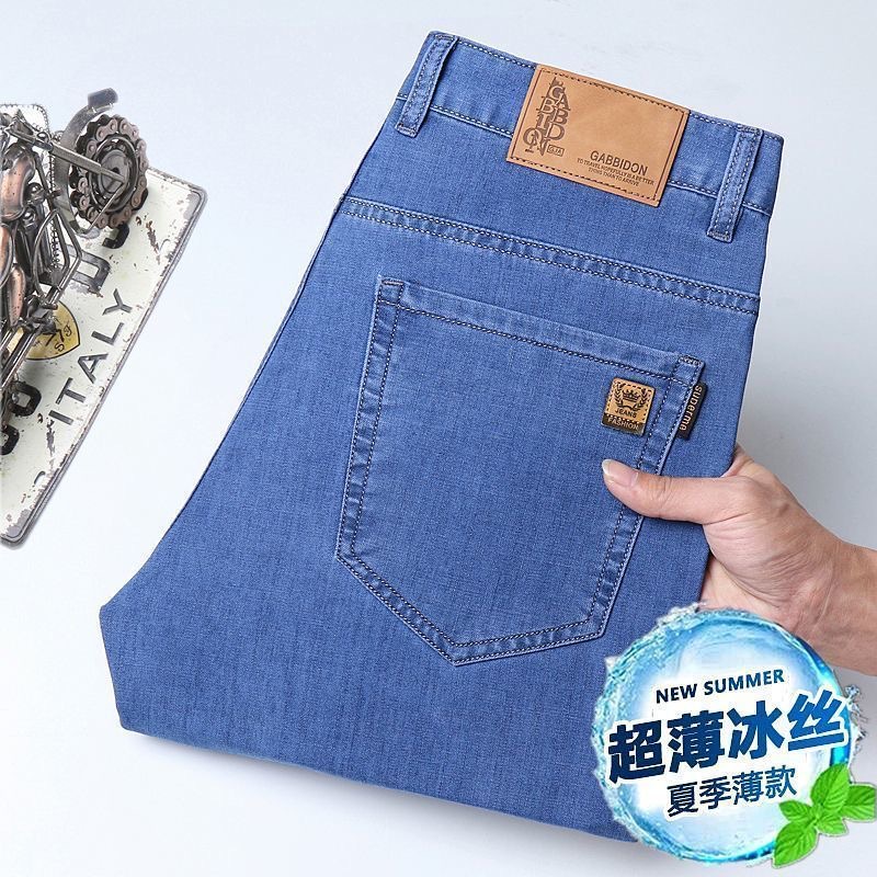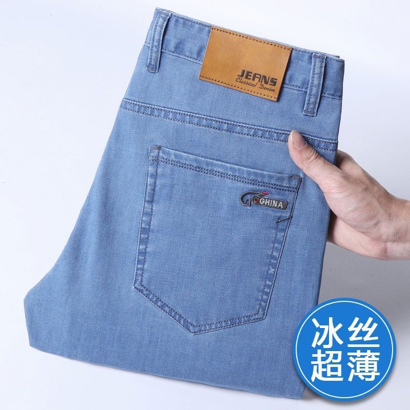 남성용 여름 얇은 아이스 실크 청바지, 고품질 한국식 다용도 바지, 루즈한 신축성 있는 스트레이트 비즈니스 캐주얼 바지