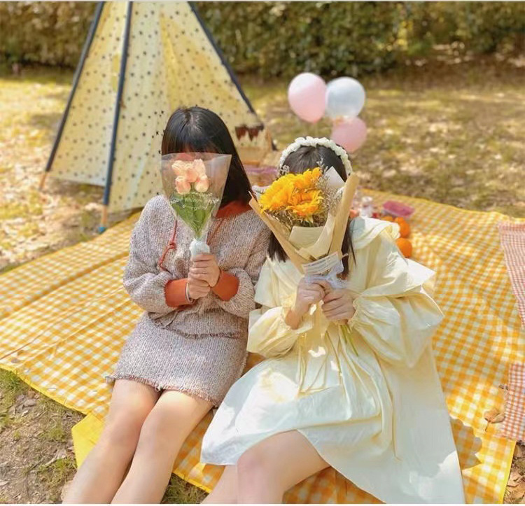 • 두꺼운 노란색 격자 무늬 1* 1.5m [1-2명 수용 가능] 양면 방수/냄새 없음