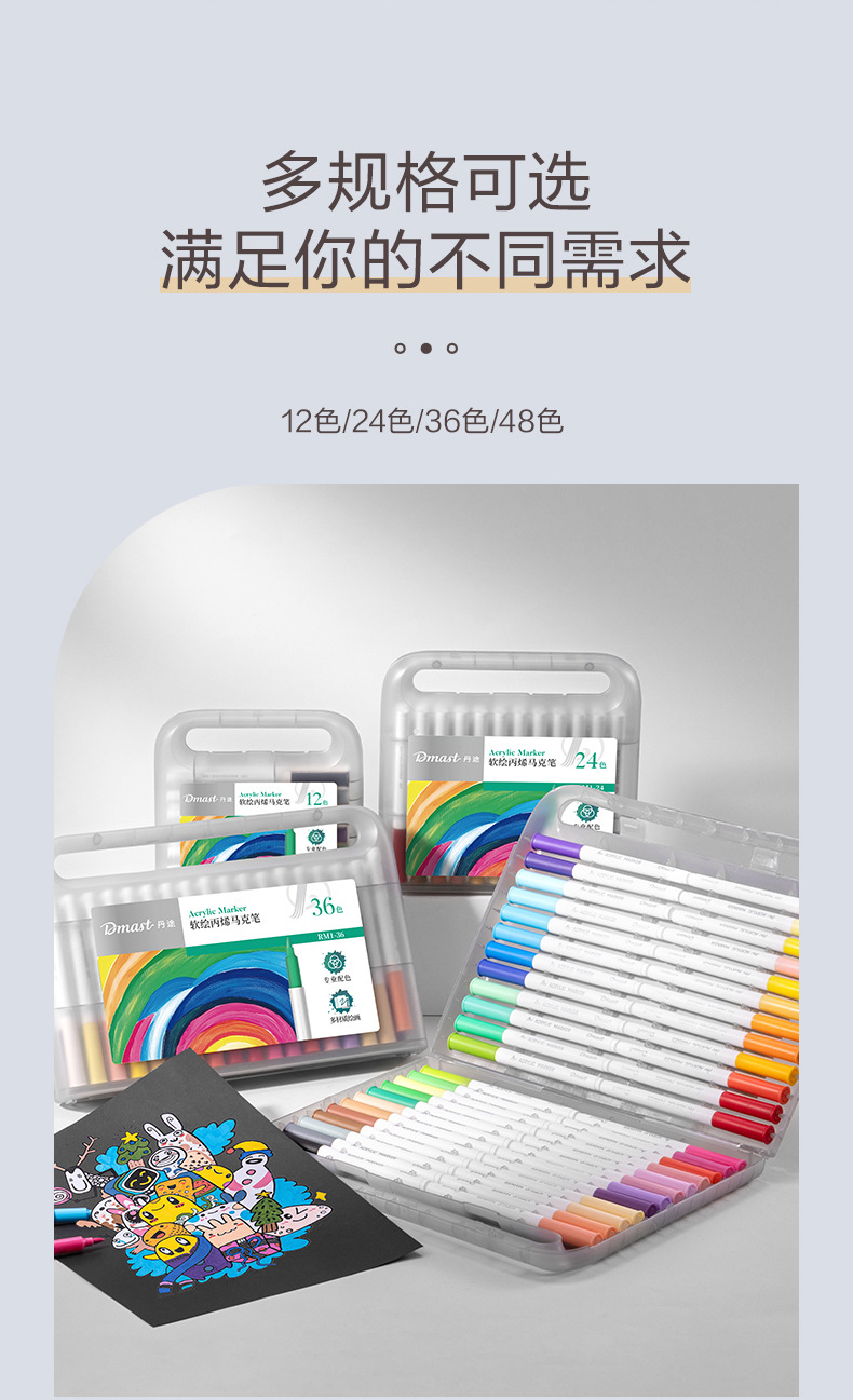 델리 다마스트 란투 RM1-24 소프트 페인팅 아크릴 마커 방수 컬러 펜 워셔블 학생 어린이 미술