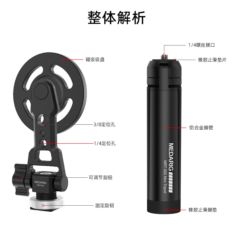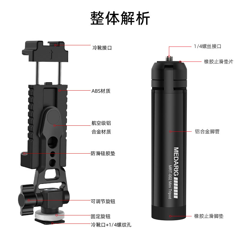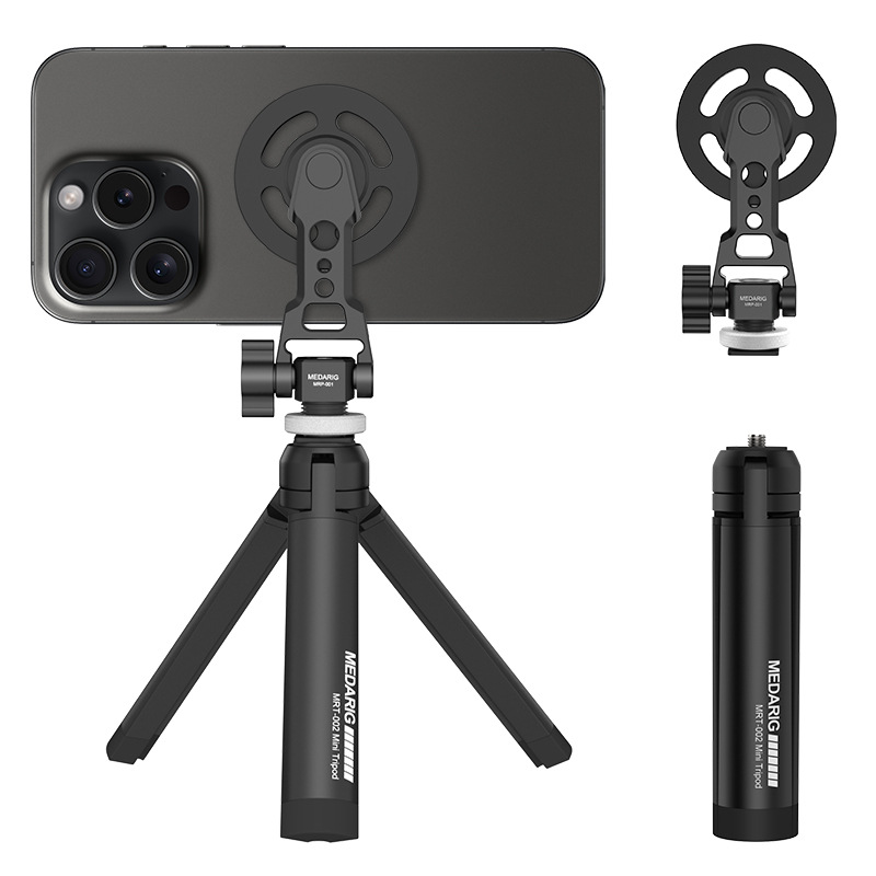 소스 공장 Medarig 알루미늄 합금 데스크탑 미니 삼각대 자기 휴대 전화 클립 세트 카메라 휴대용