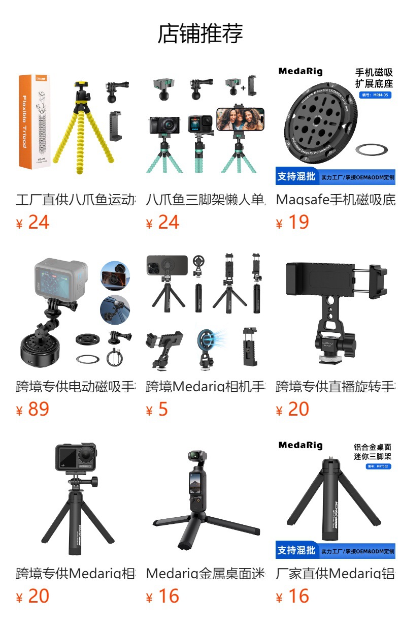 소스 공장 Medarig 알루미늄 합금 데스크탑 미니 삼각대 자기 휴대 전화 클립 세트 카메라 휴대용스토어 가기