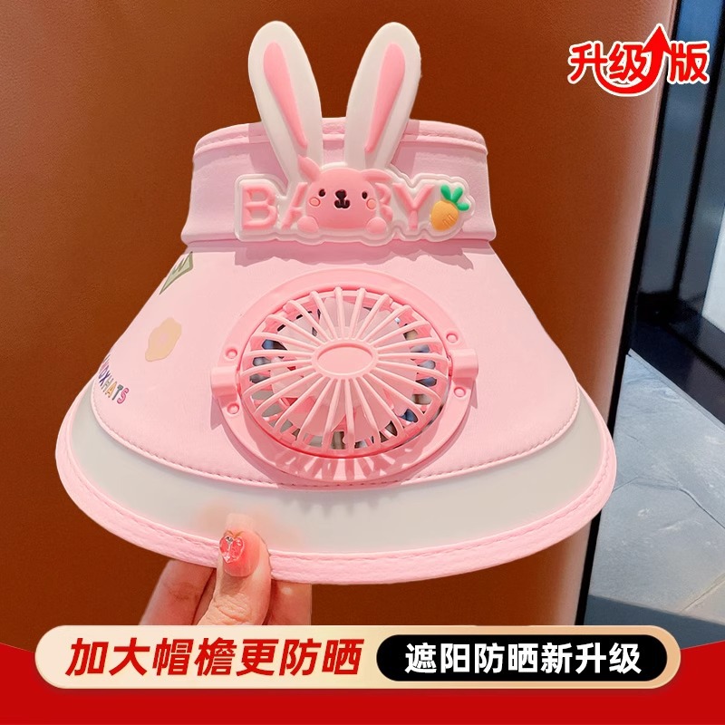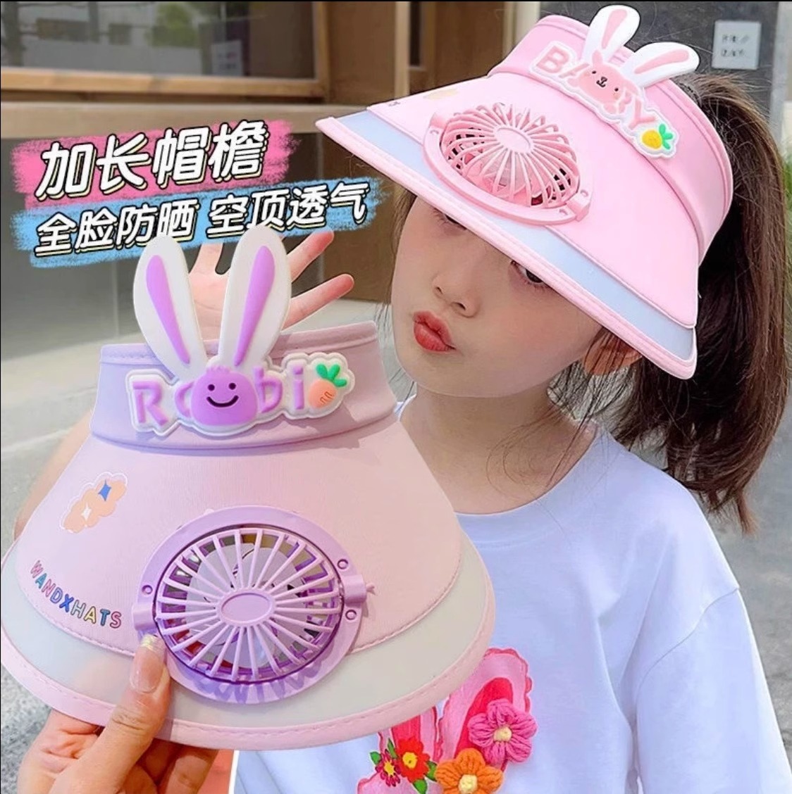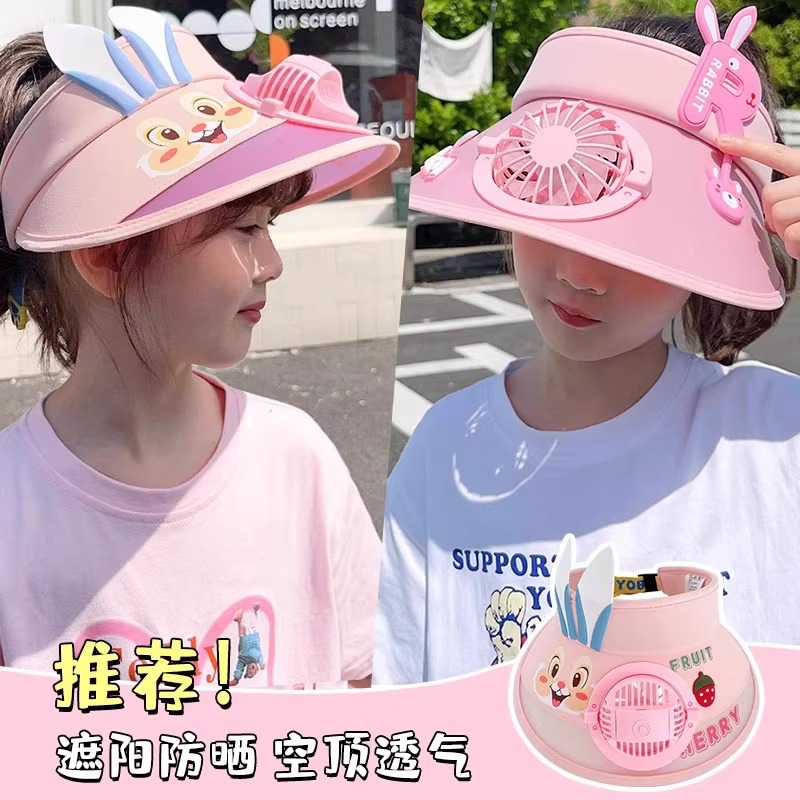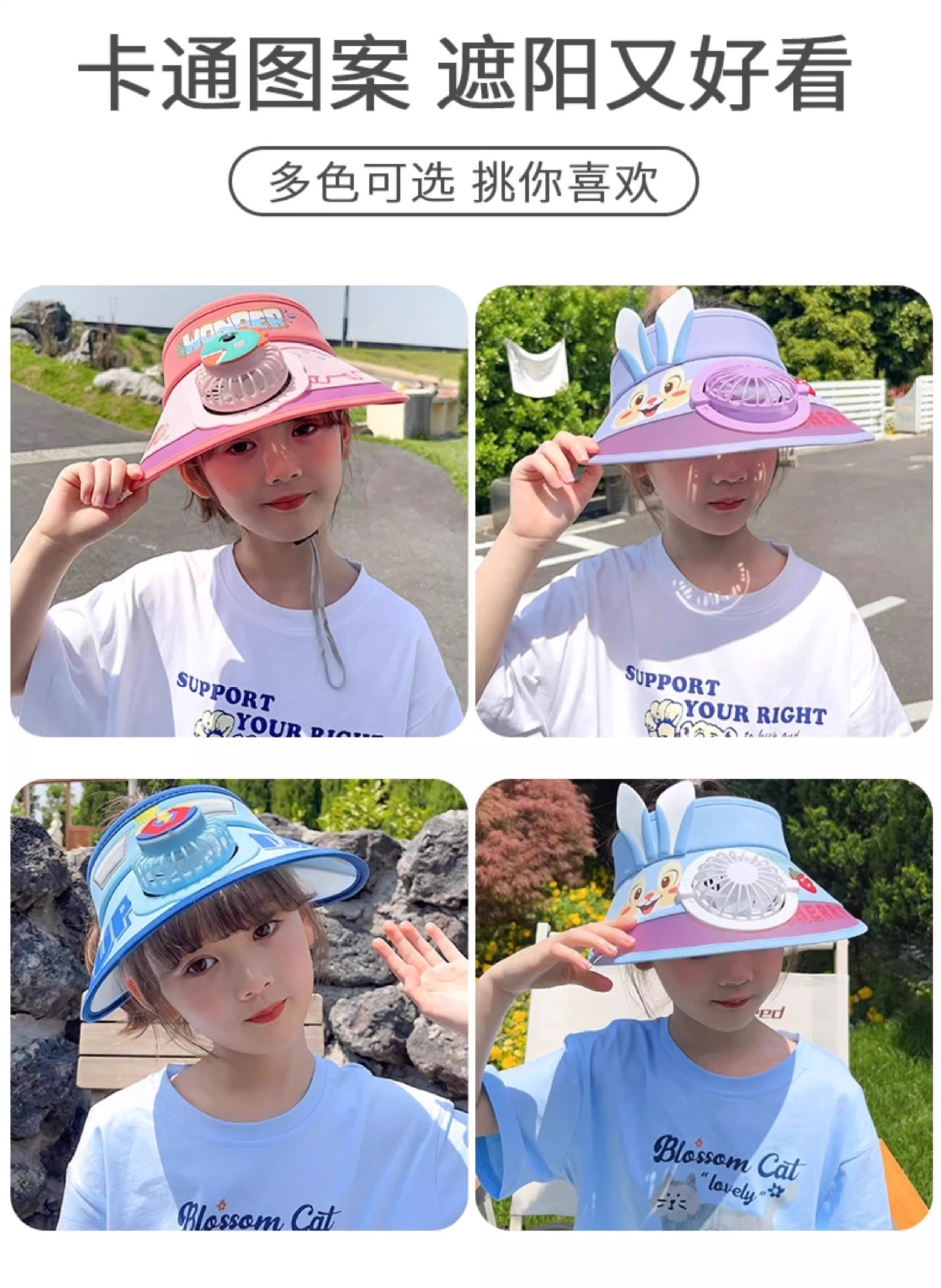 팬이있는 어린이 빈 탑 태양 모자 아기 여름 새 어린이 소년과 소녀 태양 모자 태양 모자스토어 가기