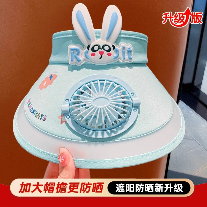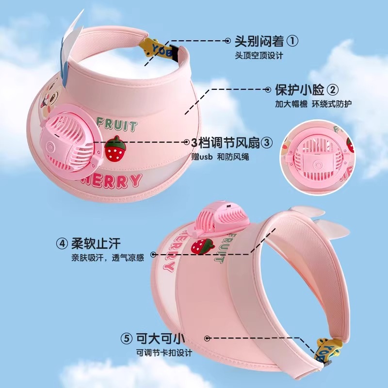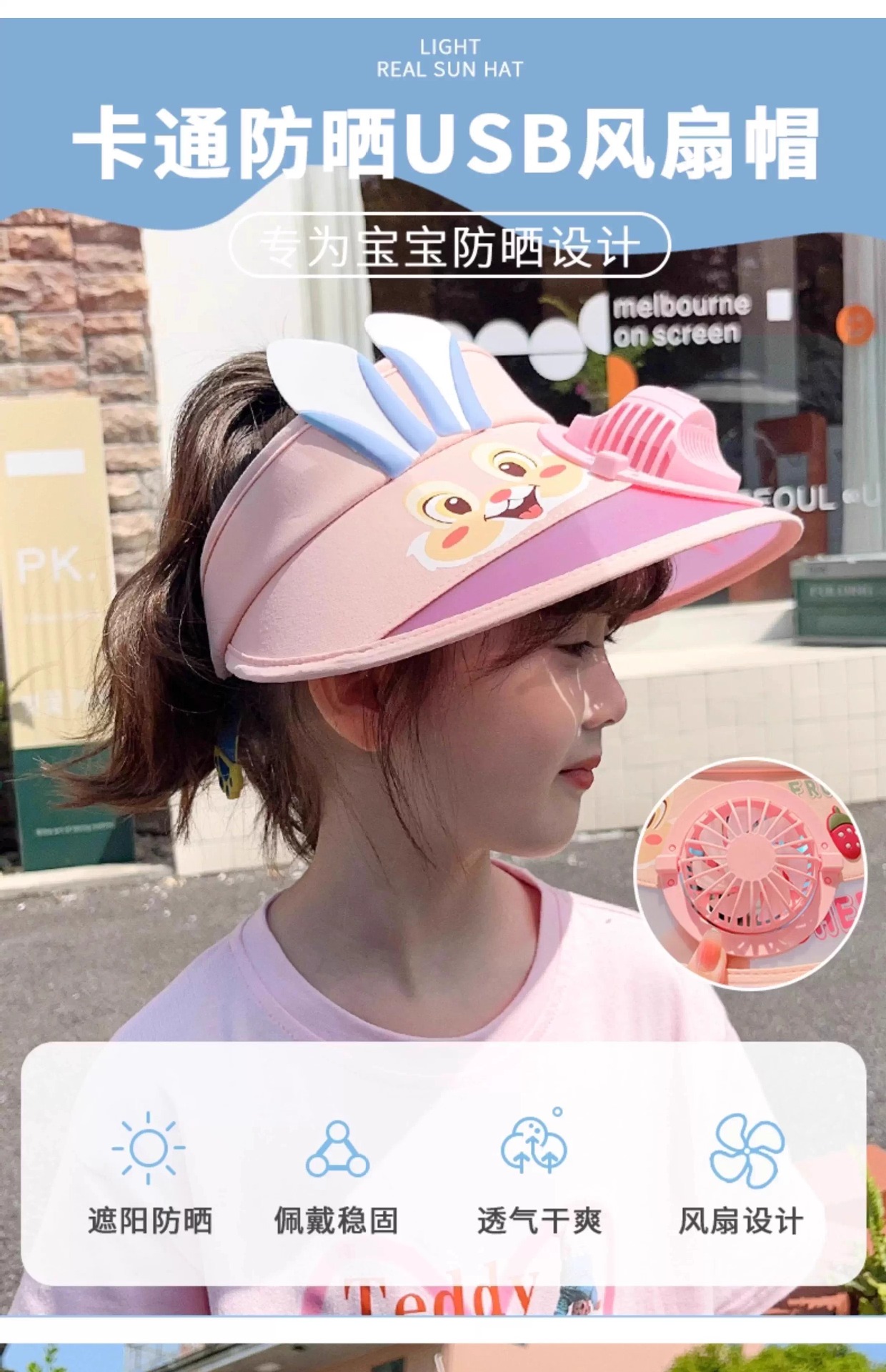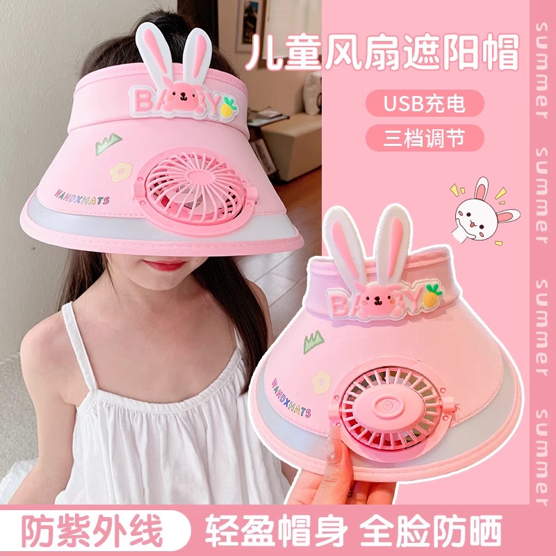 팬이있는 어린이 빈 탑 태양 모자 아기 여름 새 어린이 소년과 소녀 태양 모자 태양 모자스토어 가기