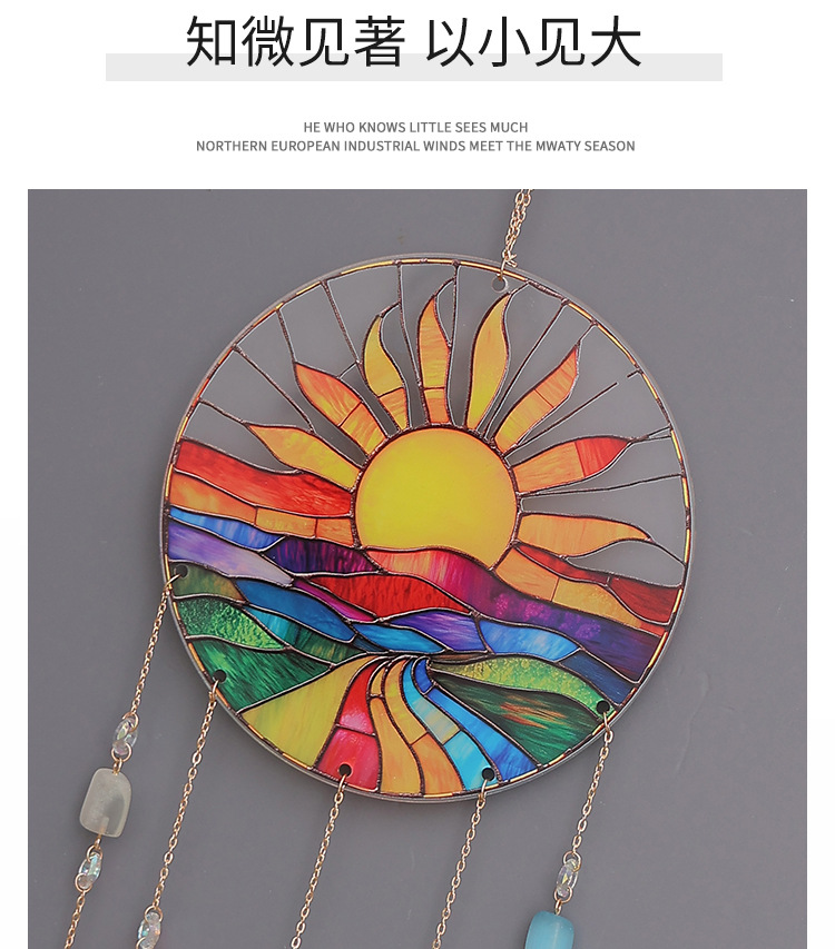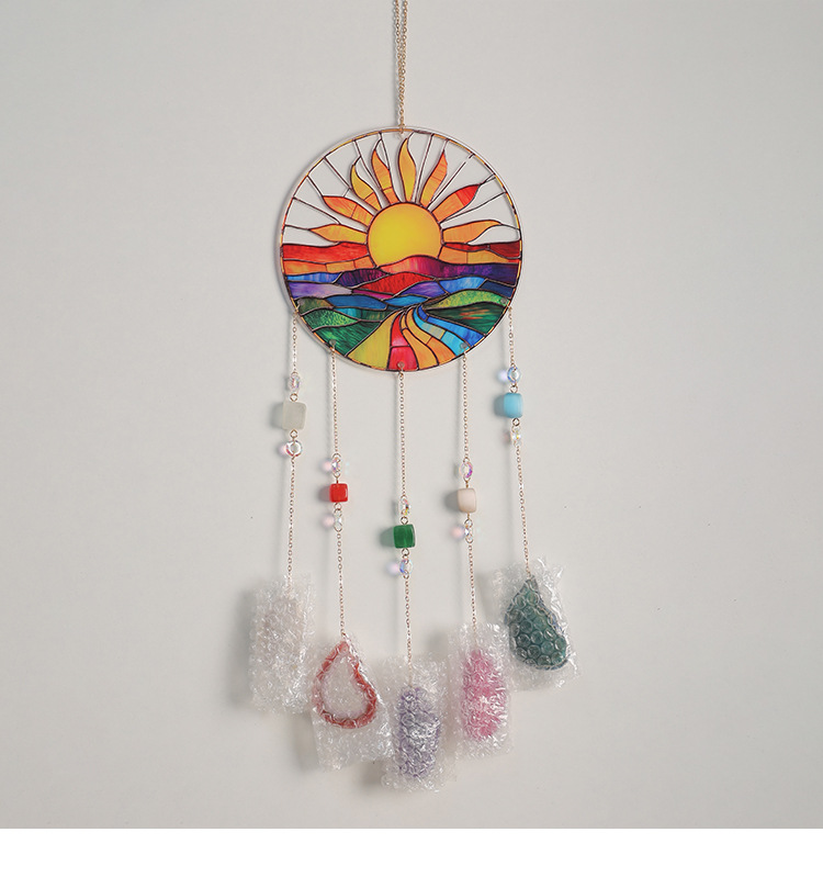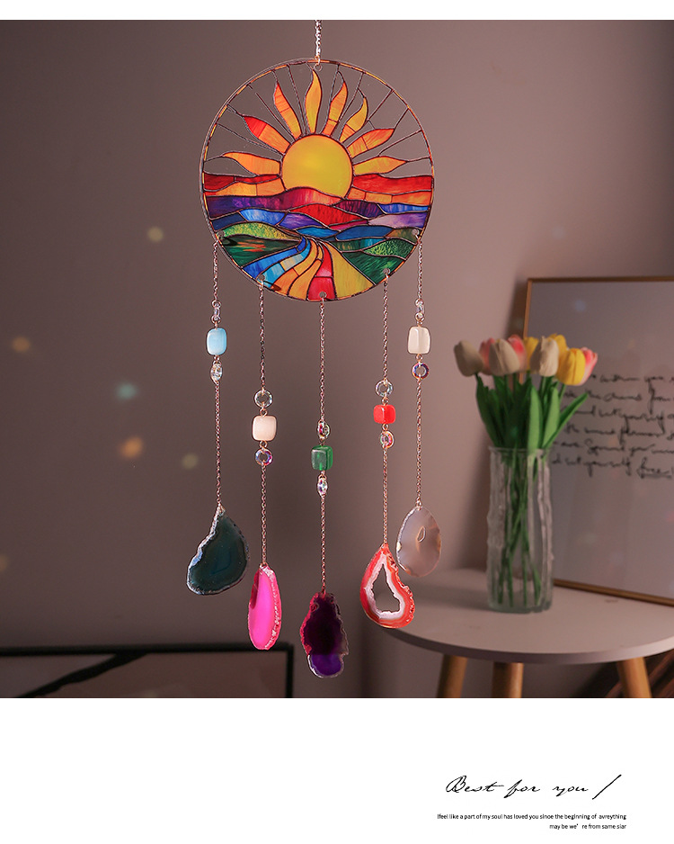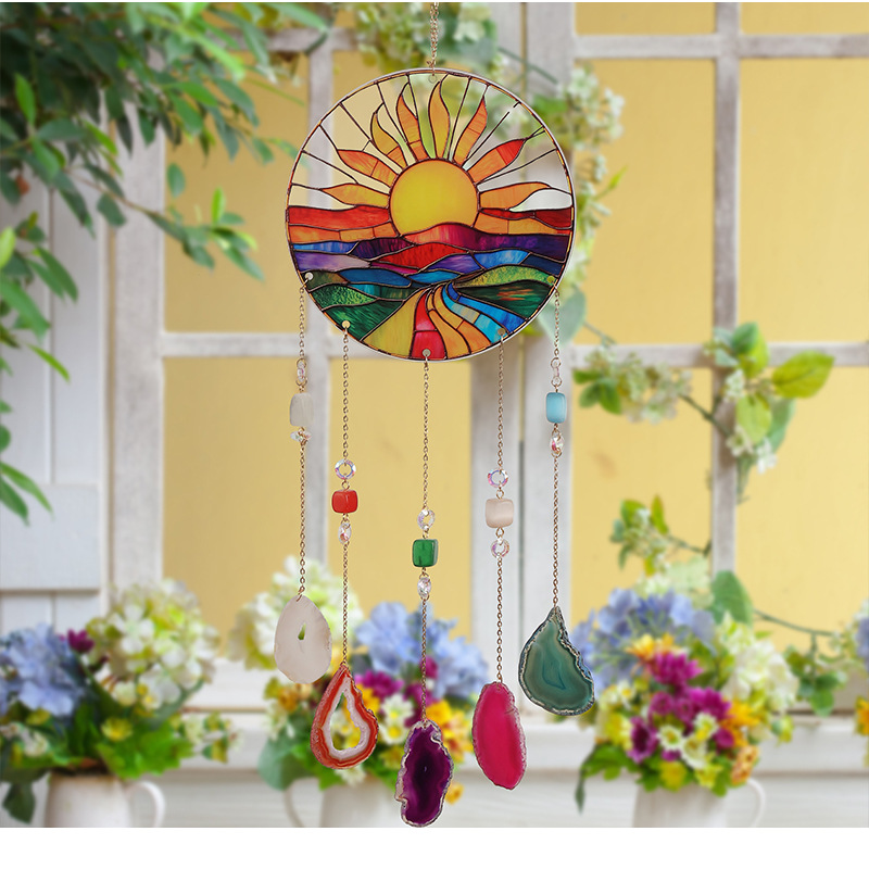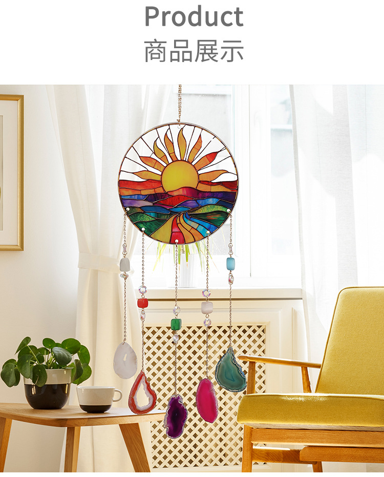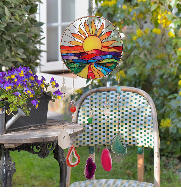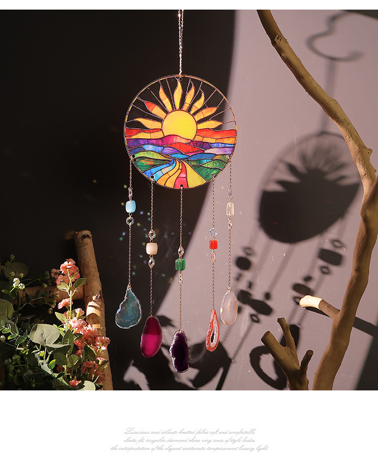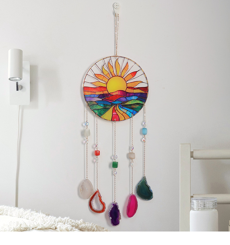 국경을 넘는 새로운 햇빛 포수 아크릴 드림 캐처 펜던트 천연 사각형 마노 조각 생명의 나무 장식