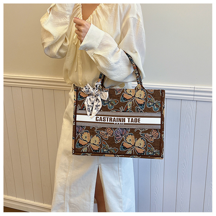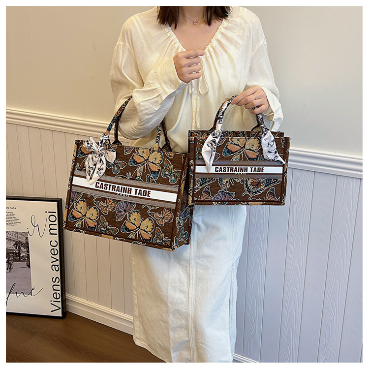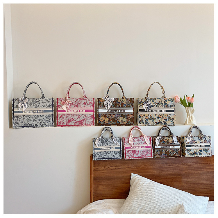 국경을 넘나드는 새로운 패션 캔버스 핸드백 새로운 도착 복고풍 인쇄 다목적 자수 핸드 토트 백스토어 가기