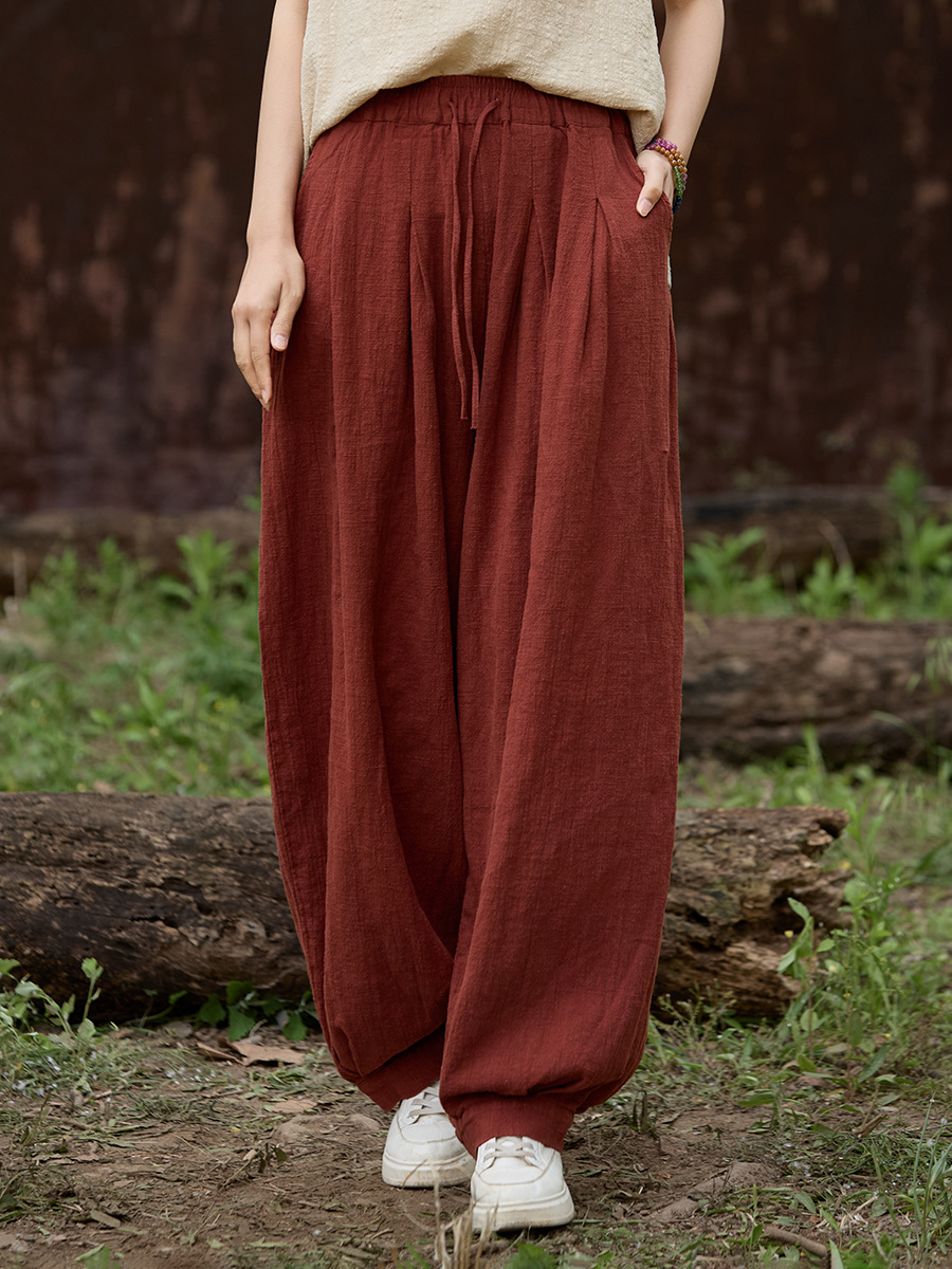 25 가을 겨울 신상 면마 여성복, 모시 샌드워싱 롱 팬츠, 신축성 있는 허리끈, 다용도 여성 캐주얼 팬츠, 랜턴 팬츠스토어 가기