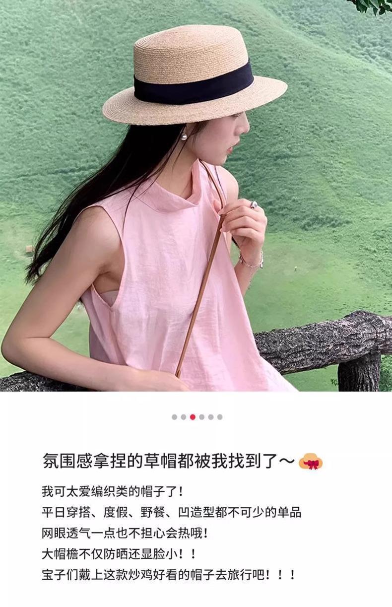 2025 여성용 프렌치 플랫 탑 밀짚 모자, 큰 머리 둘레, 플랫 챙, 해변 휴가 모자, 대형 뜨개질 선물스토어 가기