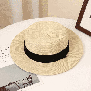 • 플랫탑 밀짚모자-베이지블랙-1개